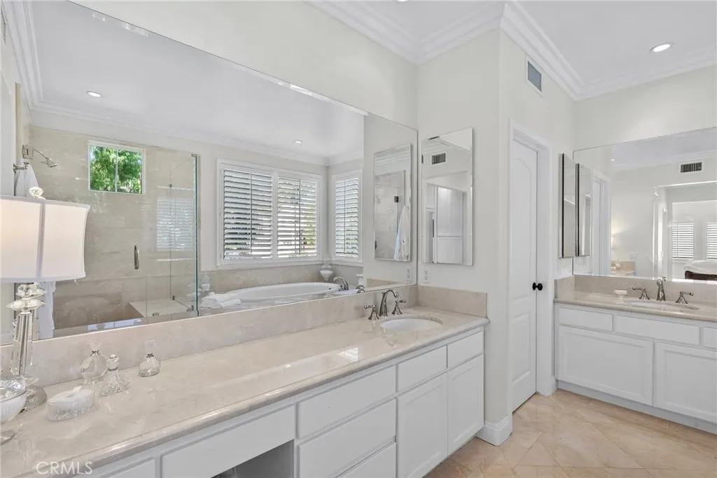 Model perfect home in the beautiful, gated Verdigris community! An epitome of luxury & sophistication combining elegance & modern design, this home is a true dream sanctuary. The private backyard is perfect for entertaining featuring a built-in spa, stamped concrete covered patio, inviting gas fireplace, and soothing waterfall, all amongst lush green landscaping. The front yard welcomes you with low maintenance turf, beautiful trees and shrubs and an inviting porch with waterfall. Step inside to the formal living room and dining room with crisp white walls, cathedral ceilings, plantation shutters throughout, gorgeous chandeliers, crown molding throughout, and neutral stone flooring. Completely remodeled light and bright kitchen features custom kitchen cabinets, 8 burner Wolfe range, built-in Sub Zero refrigerator/freezer, gorgeous stone countertops, kitchen island opens to family room with stone fireplace framed with bookcases and TV cabinet. Gorgeous custom staircase leads to loft, new carpet in hallway and bedrooms, exquisitely remodeled primary suite/primary bath with custom closets and marble flooring, upstairs laundry room with utility sink. Downstairs bedroom with new carpet, remodeled guest bath with shower. 3 car finished garage with new outdoor carpet squares, storage, work bench, full sink, and tankless water heater. 2 yr old energy efficient HVAC and transferrable solar! HOA with pool/spa, child's pool, children's playground, tennis courts, park, & BBQ's, close to award winning schools, bike paths, hiking trails, freeway access, shopping, and public transportatio