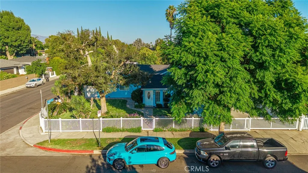 WELCOME! to 14156 Califa Street Sherman Oaks, an elegant single-story corner-lot residence that epitomizes refined Valley living. Behind its charming white picket fence lies a beautifully landscaped sanctuary adorned with fruit-bearing trees and lush greenery, setting an inviting and graceful tone from the moment you arrive. Step through the foyer framed by striking glass-block walls into a bright, open interior defined by high ceilings, gleaming hardwood floors, and timeless plantation shutters. The spacious living room, illuminated by recessed lighting and framed by dual-pane French doors and windows, centers around a Cozy classic fireplace creating a warm yet sophisticated atmosphere ideal for both relaxation and entertaining. The tastefully updated kitchen flows seamlessly into the dining area, providing the perfect setting for intimate dinners or lively gatherings. The primary suite offers a peaceful retreat complete with a private ensuite bath and generous walk-in closet, while each additional bedroom reflects comfort, quality, and enduring style. Outdoors, the enclosed front patio presents a serene sitting area, while the hardscaped backyard with elegant pavers invites alfresco dining or sun-soaked leisure. A long, extended driveway and detached garage provide ample parking for multiple vehicles or an RVwith exceptional ADU conversion potential for added flexibility and value. Nestled on a quiet, tree-lined street in prestigious Sherman Oaks, this residence offers the perfect blend of elegance, privacy, and modern convenience just minutes from Ventura Boulevards fine