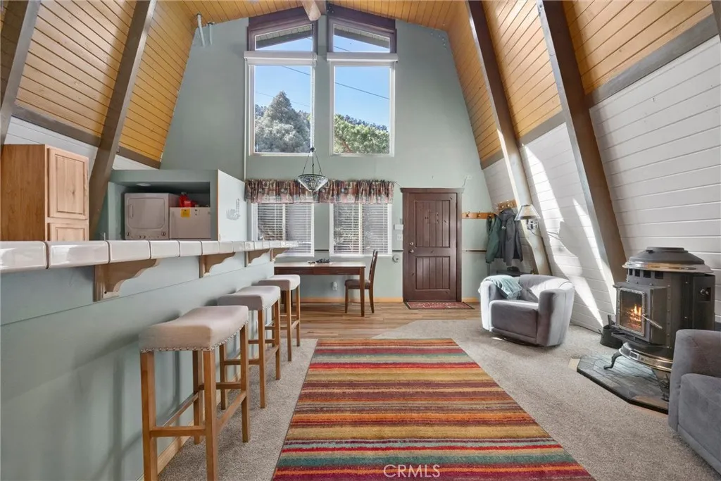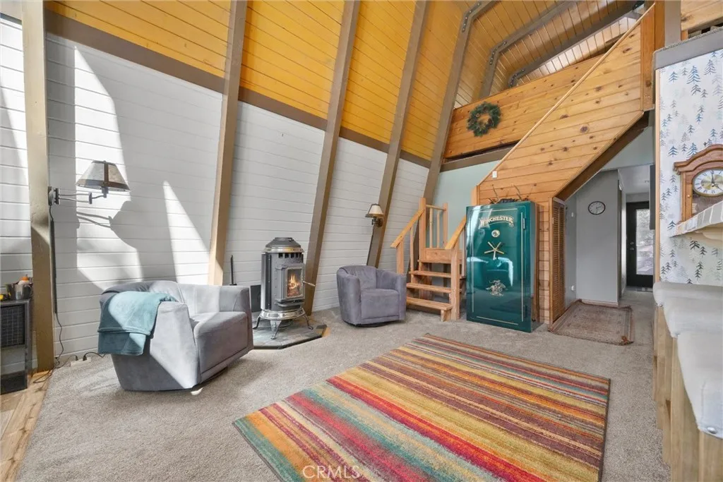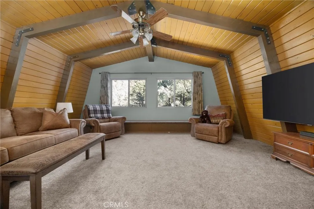 Tucked at the quiet east end of town, where the road narrows and the forest deepens, this classic gambrel cabin feels like something out of an old mountain story. Step inside and youll find warm wood tones, vaulted ceilings, and that unmistakable cabin scent of pine and earth. The open living area centers around a pellet stoveperfect for slow mornings or nights when the wind moves through the trees outside. Two bedrooms and a full bath sit on the main level, while upstairs, a spacious loft waits to become whatever you need it to be: a writers hideaway, a second living space, or a place for guests to stretch out after a long hike. Outside, a large front deck catches the afternoon sun, while the back deck looks out toward the trees and a seasonal creek that winds along the edge of the property. Beyond thatnothing but open greenbelt that leads straight into Los Padres National Forest. Beyond your doorstep, life here stretches wider than any single home. Membership in the Pine Mountain Club Property Owners Association opens a world of trails, tennis, pickleball, golf, poolside summers, fishing at Ferns Lake even an equestrian center. When the snow falls, roads are cleared, patrols keep watch, and neighbors quietly look out for one another. Its quiet here. Peaceful. The kind of cabin that doesnt try too hardjust stands ready for weekends of solitude, firelight, and the sound of water at the edge of your land.