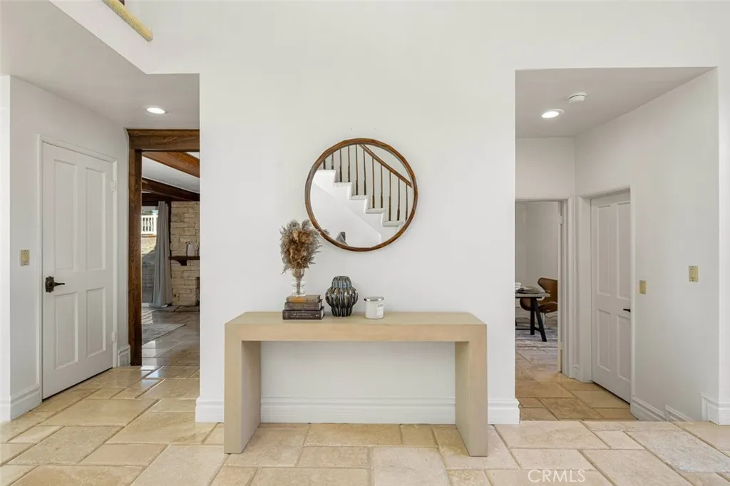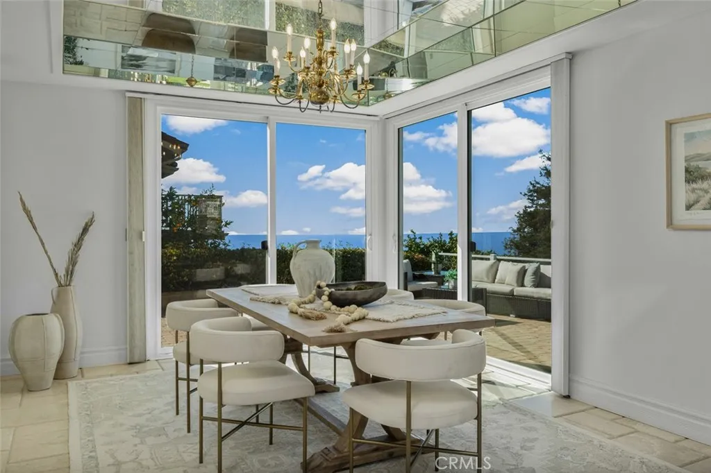 Designed with restraint and proportion, this Rolling Hills Estates residence reflects a timeless blend of coastal California sensibility and classic colonial grace. The architecture feels both grounded and elevated, with an effortless connection between the interiors and the sea beyond. Inside, every space is guided by light and balance. Tall windows invite the ocean into daily life, casting reflections across soft tones and natural textures. The living areas flow with intention, creating quiet transitions from room to room while maintaining a clear focus on the view. Each space has its own rhythm, from the formal dining room to the open family areas, united by a sense of calm continuity. Outside, terraces and garden paths wrap the property, providing natural extensions of the interior and quiet places to take in the shifting light of the ocean. Whether bathed in morning sun or the amber glow of sunset, the home feels at ease, refined, balanced, and deeply connected to its surroundings. Downstairs, a private suite offers flexibility for guests or a secluded workspace. Upstairs, the bedrooms unfold across the upper level, each one framed by sweeping views of the coastline and the horizon beyond. Subtle details, clean millwork, classic lines, and fine materials add to the homes enduring warmth without distraction or excess. This is an estate that doesnt compete with its setting but complements it, a timeless expression of coastal living where architecture, light, and landscape exist in perfect conversation.