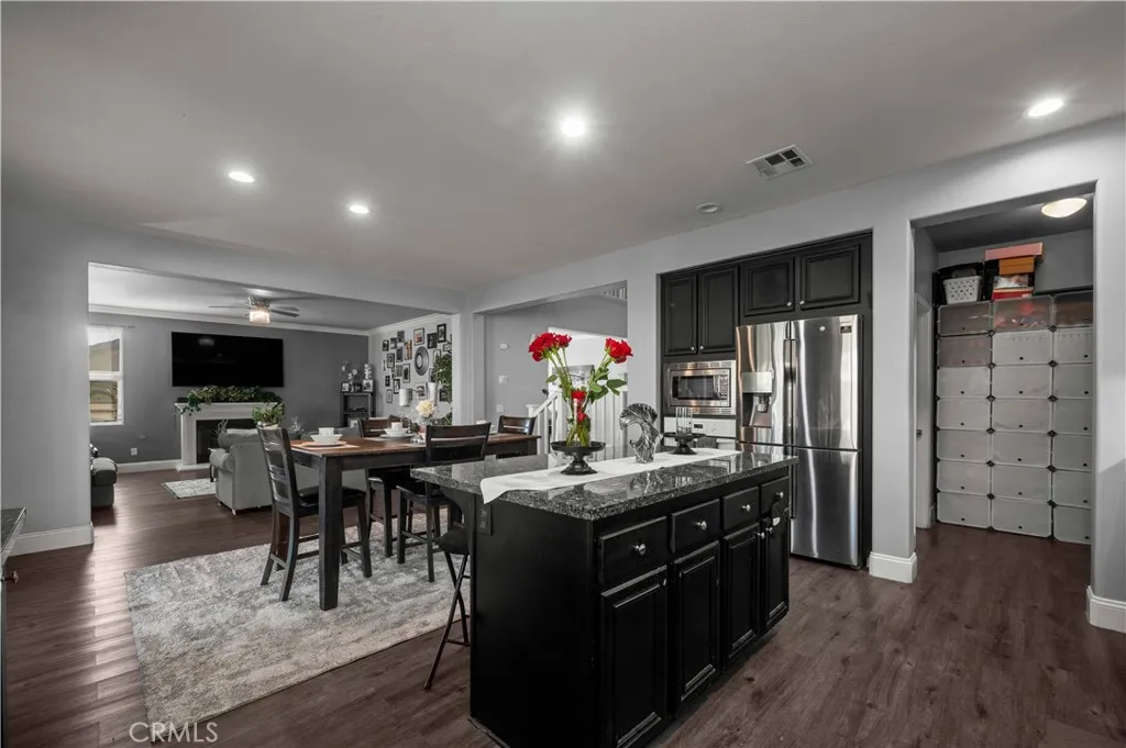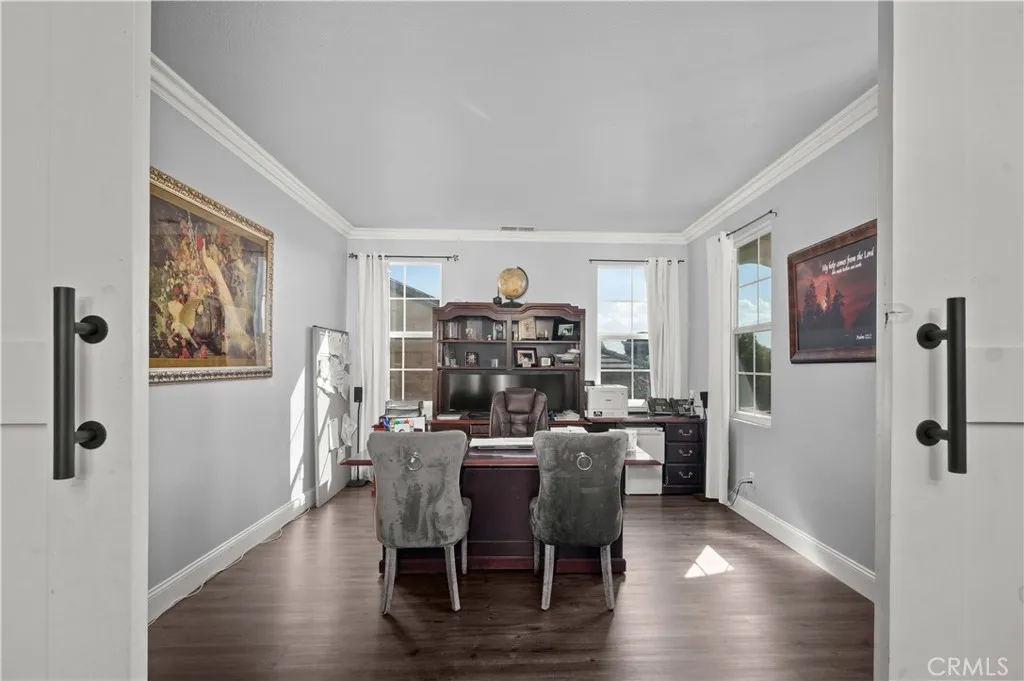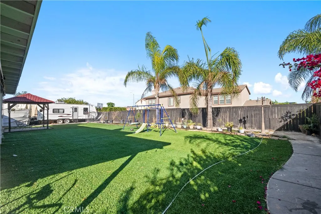 Welcome to your dream home in the heart of Moreno Valley! This stunning 5-bedroom, 3-bathroom residence perfectly combines space, comfort, and style. As you enter, youre greeted by a beautifully maintained entrance and a private office to your rightideal for working from home. The family room with a cozy fireplace and the formal dining area set the stage for gatherings and memorable moments. The gourmet kitchen offers granite countertops, an island and abundant cabinetrya perfect setup for any home chef. A sliding glass door leads to the backyard patio area, great for outdoor dining and entertaining. The homes design features a small cathedral ceiling, creating an open, airy feel throughout. For added convenience, theres a downstairs bedroom and full bathroom, ideal for guests or multigenerational living. Upstairs, the spacious bedrooms offer plenty of comfort, including a luxurious primary suite with a walk-in closet and a beautifully updated ensuite bath. Enjoy year-round comfort with central A/C and modern updates throughout, including new lighting fixtures and vinyl flooring. Step outside to your private backyard oasis, complete with a gazebo wired for entertainmentperfect for gatherings with family and friends. A 3-car garage and extra-wide driveway provide ample parking for vehicles, an RV, or recreational toys. Conveniently located near schools, shopping centers, parks, and major freeways, this exceptional Moreno Valley home offers both tranquility and accessibility. Come fall in love with the space, charm, and comfort this home has to offer!