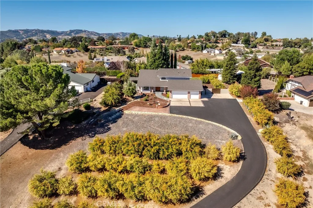 Stunning Custom Home on 1 Acre Near Downtown Paso Robles. Discover this exceptional 4-bedroom, 3-bathroom custom home, perfectly situated on a sprawling one-acre lot just minutes from the vibrant heart of downtown Paso Robles. This one-of-a-kind property combines modern luxury with serene outdoor living, making it an entertainer's dream. The spacious living areas feature red oak hardwood flooring and plush carpeting throughout, providing a warm and inviting atmosphere. The living room showcases a unique, high-end ammonite fossilized fireplace, adding a rare and stunning focal point to the space. The expansive kitchen boasts stainless steel appliances, along with a cozy breakfast area and a large pantry for all your culinary needs. The versatile layout includes a bedroom or office on the main level, ideal for guests or work-from-home arrangements. Retreat to the luxurious primary suite, which features a generous ensuite bathroom complete with a bonus room and private balcony, perfect for enjoying morning coffee or sunset views. The property is adorned with mature trees and lush landscaping, offering plenty of space to entertain family and friends in a picturesque setting. With beautiful views and ample space, this home provides the perfect blend of tranquility and convenience, just minutes away from the best that downtown Paso Robles has to offer. Dont miss your chance to own this exceptional property!