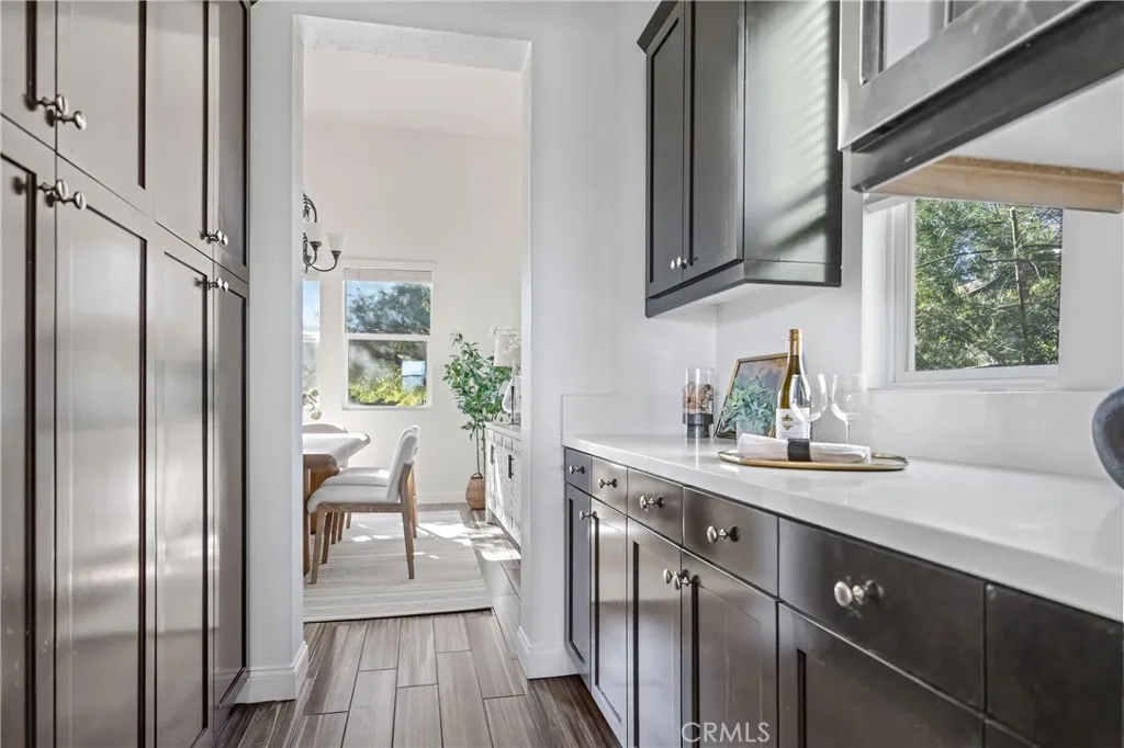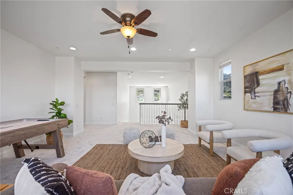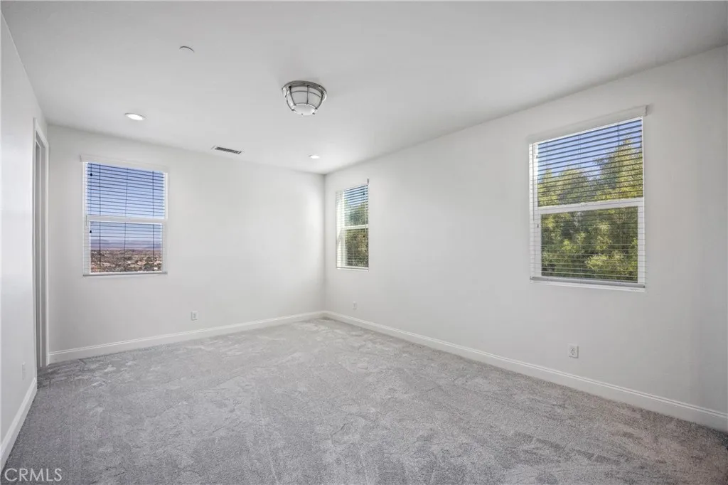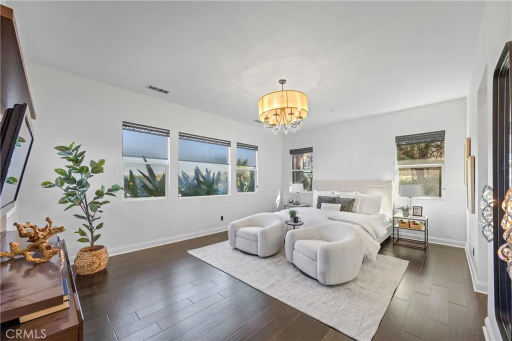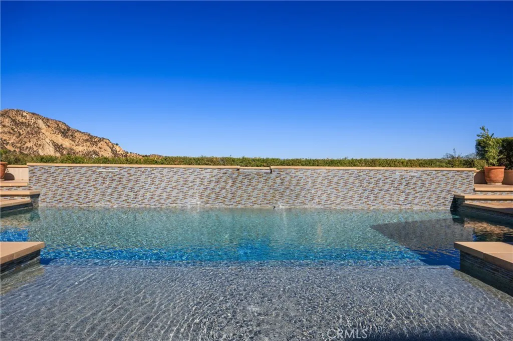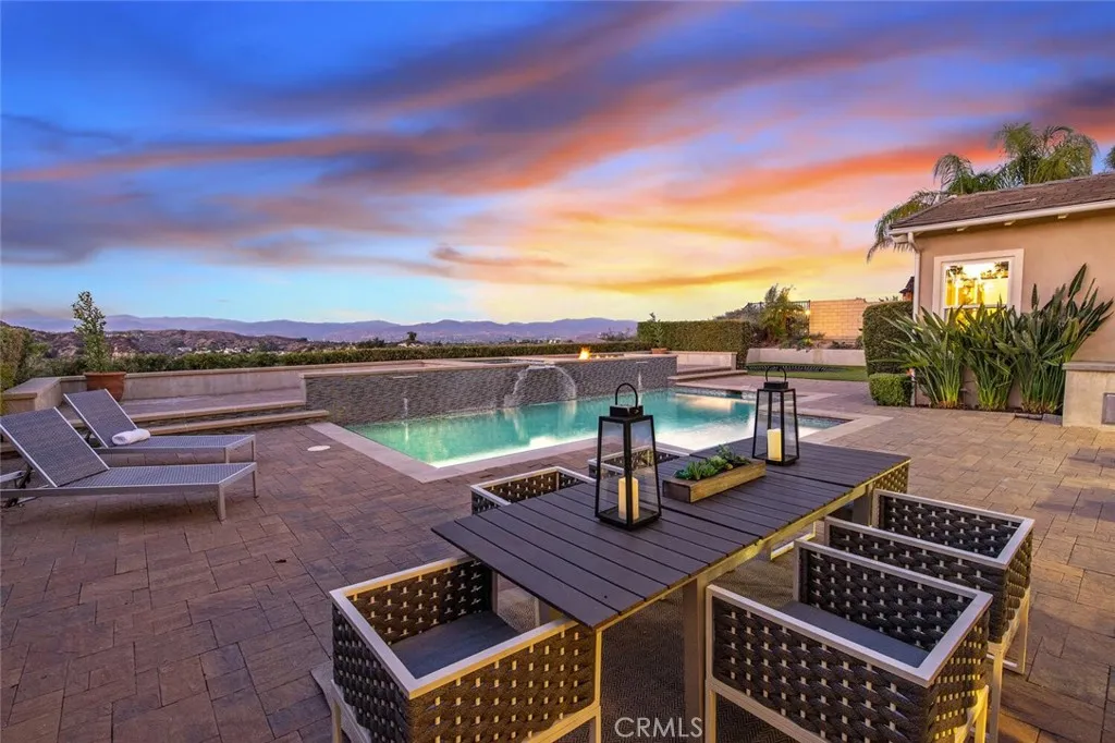 Overlooking the Santa Clarita Valley, this exquisite 5 bedroom, 5 bathroom POOL, SPA, and PANORAMIC VIEW executive home with OWNED SOLAR, 4 CAR GARAGE and DOWNSTAIRS PRIMARY SUITE offering privacy, elegance, and modern design with sweeping mountain and valley views! One of only 20 homes in this exclusive community, this incredible home sits on a beautifully landscaped, private cul-de-sac lot with sophisticated upgrades inside and out! Step through the regal entry into a bright, open concept floor plan with soaring ceilings, fresh paint, and carpet (October 2025)! A bonus room off the foyer can serve as a formal dining room, family room or home office, with direct access to the gourmet chefs kitchen! The kitchen is an entertainers dream and the heart of the home, featuring quartz countertops, large center island with breakfast bar, double ovens, stainless steel appliances, abundant cabinetry, and butlers pantry, complemented by an adjacent dining nook with backyard access and poolside views! Stacking sliding glass doors open to the sparkling pool views, covered patio and built in BBQ! The spacious living room is accented by a custom stonework wall which opens to the resort-style backyard complete with covered patio, built-in BBQ, lounge and dining areas, and a sparkling pool and spa with waterfall, fire pit adorned seating area framed by expansive mountain and valley views! The playset and in-ground trampoline add family-friendly fun while maintaining ample space for entertaining! The downstairs layout includes two well-appointed bedrooms. The DOWNSTAIRS PRIMARY SUITE is a l