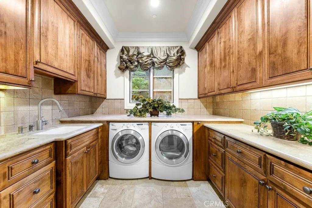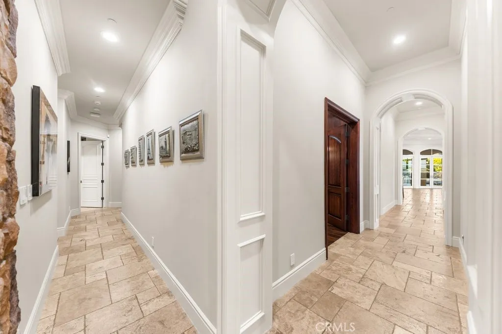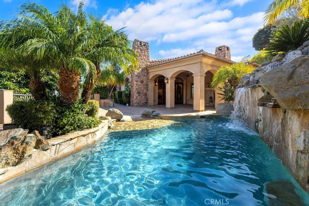 Welcome to an exceptionally rare and elegantly custom designed home, privately tucked away at the end of a serene cul-de-sac with gentle ocean breezes in the distance. Built in 2008, this Single-Story residence offers 5,650 square feet of living space, situated on a distinctive 26,000 square foot lot, with an estimated usable area of about 16,000 square feet. This Tuscan inspired Mediterranean estate combines timeless sophistication with peaceful seclusion in the prestigious Monarch Bay Terrace neighborhood. The home features its own private gate, with lush tropical landscaping on both sides of the entrance, with a long private driveway leading to a three car garage and tranquil entry courtyard. Step inside to discover soaring 12 ft ceilings that enhance the open and luxurious layout. This exquisite home features 5 bedrooms and 6.5 bathrooms, each room with its own an en-suite bath, there is also a bath for the pool and a half bath for guests. Additional highlights include a library, a luxurious wainscoted theater, and a walk in wine cellar. The spacious primary suite boasts dual walk in closets and lavish soaking tub with separate shower, and two private toilet rooms one on each side. The gourmet kitchen is equipped with top of the line appliances, an oversized built in side by side refrigerator, custom cabinetry, and a large walk in pantry. The expansive great room offers two dining areas, wet bar, walk in wine cellar room and dual oversized double glass doors opening to the backyard. Throughout the home, high quality solid wood doors and premium windows offering excellen