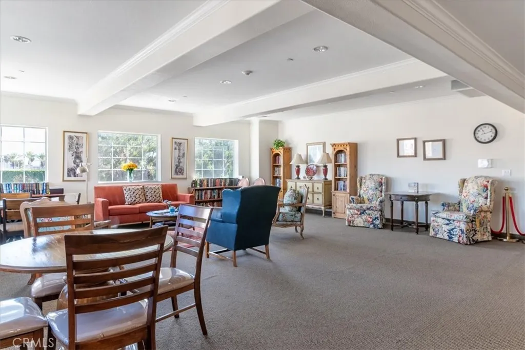 Welcome to Village Court. Retreat style living in this one-bedroom, one-bathroom home in a vibrant 55+ senior community. This second-floor unit is just steps from the elevator and offers a west-facing view of the sparkling pool, outdoor fireplace, and BBQ grillframed by mature trees and glowing sunsets. Whether you're enjoying a quiet morning coffee or an evening breeze on your private balcony, every day feels like a vacation. Additionally, your small pet is welcome too! Inside, the open-concept layout is perfect for entertaining or simply relaxing. The living room features fresh paint and new carpet, while the gourmet kitchen includes granite countertops, updated lighting, and a stackable washer and dryer. And lets talk about storage, this home comes with a large private locked storage cage thats spacious enough to hold seasonal items, boxes, and even small furniture. Its a rare and valuable bonus youll truly appreciate. Just outside your door, the second-floor lounge offers a cozy space to play games or connect with neighbors. Your assigned parking space in the secure garage is conveniently located near the elevator for easy access. The community amenities are second to none: a resort-style pool and spa, state-of-the-art fitness center, billiards, game room, library, and a recreation lounge with a big-screen TV. Outdoor dining areas and BBQ facilities make it easy to gather with friends or family under the stars. The HOA covers water, trash, insurance, and exterior maintenance, making life here as carefree as it is comfortable. Located near restaurants, shopping, entertai