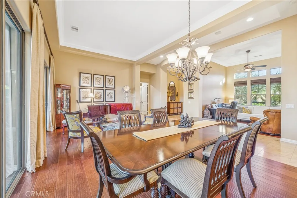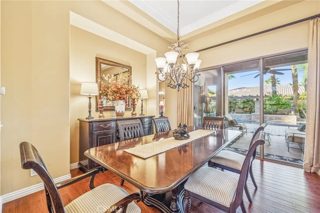 Welcome to this magnificent desert estate, a residence where luxury, comfort, and style converge into a singular experience. This gorgeous 4 bedroom, 4.5 bath home, encompassing 3,240 square feet, is situated on a premium 14,375 square-foot corner lot, providing unparalleled space and privacy. Upon arrival, be captivated by the elegant paver-lined driveway and meticulously landscaped front yard. The homes interior reveals a sprawling open floor plan, distinguished by travertine and wood flooring, soaring ceilings with crown molding, and recessed lighting that illuminates the main living areas. The combined formal living and dining rooms offer an ideal setting for sophisticated entertaining, while the inviting TV room provides a cozy retreat with its built-in entertainment center, bookshelves, surround sound, and a charming fireplace. The heart of the home is the gourmet kitchen, a culinary masterpiece designed to impress. It features granite slab countertops, stainless steel appliances, a gas cooktop, and a spacious island with a breakfast bar. The luxurious master suite is a true sanctuary, boasting a separate seating area, his-and-hers walk-in closets, and a spa-like bathroom complete with double vanities, a deep soaking tub, a custom tiled shower and a stunning custom painted wall mural. Step outside into a private, resort-style backyard retreat, where luxury and comfort are harmoniously blended. A spacious, pergola-covered patio features a built-in fireplace, a fully equipped outdoor kitchen with a BBQ, and multiple seating areas perfect for gatherings. The centerpiece