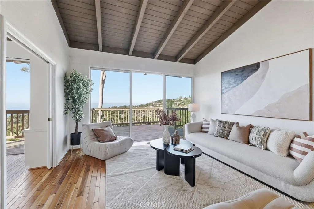 Nestled atop a hillside in exclusive Lunada Bay, this elegant 3,558 square foot home features sweeping panoramic ocean and coastline views from Redondo Beach to Santa Barbara Island. With vaulted ceilings and full-length windows in every room, the home is flooded with natural light, and an inviting wraparound deck offers access to the vista of rolling hills, sky and sea. The main level features a spacious open living room with a fireplace, a skylit chefs kitchen, including a stylish dining nook, formal dining area, study and family roomideal for entertaining or relaxing. The gracious primary suite offers two private bathrooms and a cozy fireplace. In total, there are five bedrooms plus a sitting room with its own bath that can serve as a sixth bedroom or guest suite. A flat backyard provides a rare blend of usable outdoor patio and lengthy lawn space to run around. Lovingly maintained and thoughtfully designed for gatherings, this home offers a rare opportunity to experience breathtaking sunsets and timeless California living in gorgeous Palos Verdes Estates.