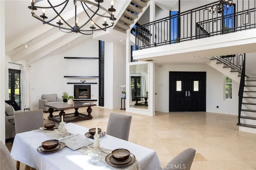 Newly-remodeled, Nellie Gail Ranch view home with private outdoor living. Enjoy sweeping mountain vistas from this three-level residence with rooftop deck, set on roughly 1/4 acre of flat, usable land. A generous driveway leads to a large 3-car garage and manicured landscaping, making for a welcoming curb appeal. Inside, double entry doors open to grand interior proportions with vaulted ceilings and abundant natural light. The living room has dramatic two-story ceilings and a gas fireplace, and the dining area connects to the inviting patio through double French doors. The chefs kitchen is equipped with Thermador double ovens, a SubZero refrigerator, granite countertops, island, and pantry storage. The generous family room features a second gas fireplace, large windows, and direct access to the backyard, continuing the home's indoor-outdoor design. Fresh paint, travertine flooring, convenient powder room, downstairs office, and designated laundry room with sliding barn door complete the main floor. With six total bedrooms and four full baths, the upgraded home comfortably accommodates family and guests. On the top level, you will find the expansive and private primary suite surrounded by spectacular views and has private access to a large balcony. The primary bath has a chic soaking tub, double vanity, shower, and a spacious walk-in closet with natural light. The private pool-size backyard includes a patio and lawn surrounded by lush, mature landscaping with Italian cypress and palm trees. Exterior stairs provide direct access to the upper floors, and the rooftop deck deliv