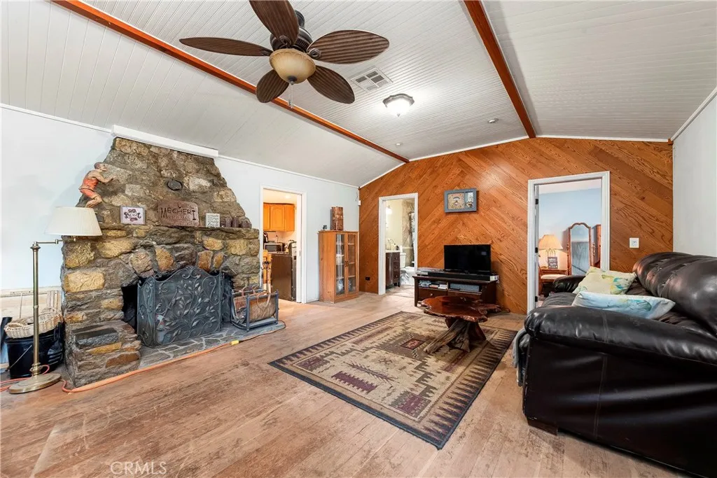 Here's your chance to own a little piece of history with this lovely 1926 home nestled on a hill in the quaint mountain community of Green Valley! Green Valley is conveniently located just hour drive to Santa Clarita or Palmdale, and yet feels as if you escaped to the country! Enjoy privacy and scenic views on more than 1/3 acre lot (three lots included). The home features a private driveway (newly lined with crushed rock) leading up to a fenced entry gate. The front of the home has a raised foundation adorned with river rock along the bottom and attractive wood planking on top. The immediate area around home is fenced. Even though the original build date was 1926, other than the fireplace, foundation, wood floors, and rock wall out front, the rest of the home is newer construction. Of course, there have been additional improvements completed over the years, including a metal roof installed, new front door, interior paint, updated bathroom fixtures, new front porch installed with weather-resistant planking, newer septic tank installed, tankless water heater, renovated utility room off the kitchen with new drywall and paint. This home has original wood flooring in the great room with a grand floor-to-ceiling river rock fireplace as the focal point, and solid wood-beamed ceiling. Take in the surrounding beauty outside with plenty of windows throughout the home. Yearly grapes have been harvested with your own grapevines outside. Enjoy your access to a U.S Forestry Department Artesian spring filling up two 500-gallon tanks in your back yard. This is an affordable source of wat