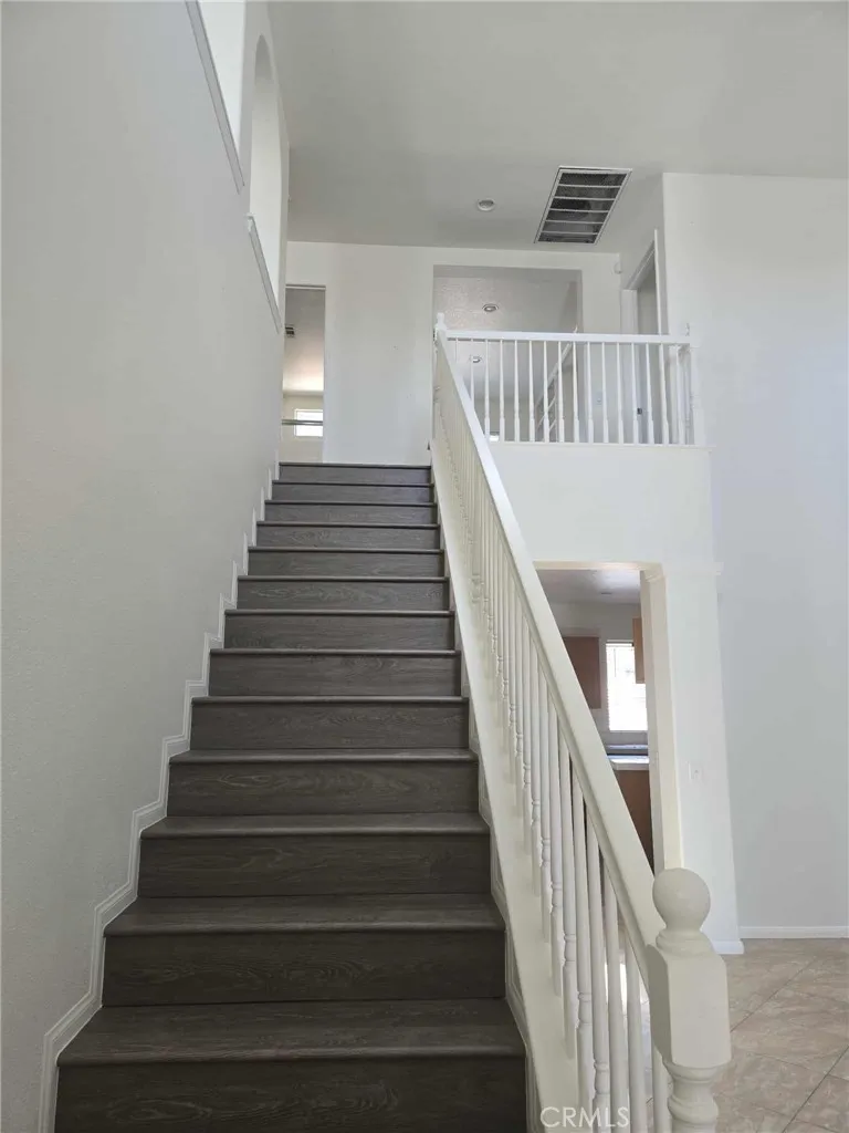 A beautiful upgraded home in a desired part of Moreno Valley. It's a roomy, open and airy home with high ceilings, 2,895 SF of living space with large living room, dining room, spacious kitchen, breakfast nook area, a comfortable family room with a fireplace, a separate laundry room, one bedroom with a full bath on the ground floor. Upstairs are the 3 bedrooms, the large master bedroom with an on-suite with tub/shower separate and dual sinks, 2 bedrooms with one full bath to share. The loft upstairs can be used for a bigger family room and the tech center. 3 car garage and direct entrance into the house.