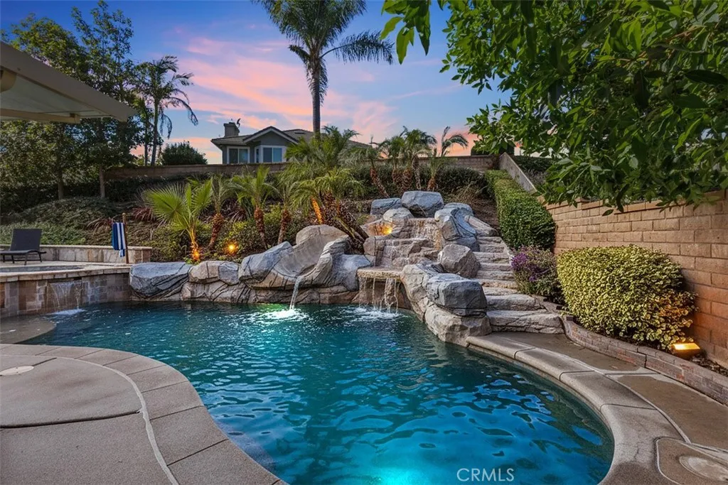 Elegant Family Home with Resort-Style Backyard on a Spacious Lot Nestled on a generous ~9,100 sq. ft. lot in a serene, established neighborhood, this elegant residence offers 2800+ sq. ft. of living space across two stories. With 4 bedrooms and 3 bathrooms, it combines space, comfort, and styleperfect for relaxed family living and elegant entertaining. At the heart of the home, a chef-caliber kitchen featuring a WOLF cooktop and double oven, opens seamlessly to the family room and main living areas, creating an ideal flow for gatherings and indoor-outdoor living. The primary suite provides a luxurious retreat with double-door entry, dual walk-in closets, a sitting area, and a spa-inspired en-suite bathroom. The additional bedrooms are generously sized, including one conveniently located on the main level next to a batha perfect setup for guests or multi-generational living. Step outside to your private backyard oasis: a sparkling saltwater pool and spa with rock waterfall and slide, a golf putting green, and a built in BBQ with refrigerator and Bar offering true resort-style living. Additional highlights include a 3-car garage, RV parking, and a quiet cul-de-sac location within a community celebrated for its family-friendly atmosphere and top-rated schools. *Some of the photos have been virtually staged or professionally altered*