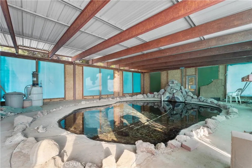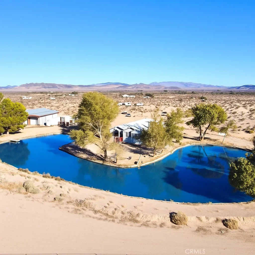 RARE FIND IN NEWBERRY SPRINGS! 10 acres, 2,040 sq ft manufactured home on permanent foundation with a beautiful wraparound lake! This home features a private lake that offers a 180 degree view of the water from the home's large living room. Check out all these key feauters! Home:3 bedrooms, 2 bathrooms, large kitchen with a breakfast nook and a large dining room. The living room features wraparound windows for the perfect view of the lake and sunsets. The primary bedroom is massive, and features an en-suite bathroom and a retreat that would be perfect as a home office, sitting area or baby nursery. The laundry room is located inside and has washer and dryer hookups. You can also enjoys views of the lake from the front covered porch or the side covered porch. Cool down with an evaporative cooler or on the hotter days switch to central air. The home has a private well, conventional septic and is on permanent foundation making it easy to obtain a loan! Workshop:A truly unique selling point is the massive, dedicated workshop/garage. It is professional-grade and built to handle heavy-duty projects. The workshop features significant electrical service, including 220V and three-phase power, capable of running heavy machinery and welders without an issue. It also features a service pit so you can work on vehicles without needing a lift. In addition to the primary workspace, there are dedicated areas for parts, tools, equipment, or perhaps the storage of recreational vehicles and farm equipment. Ideal for use as a professional shop, a serious hobbyist's dream workshop, or for storin