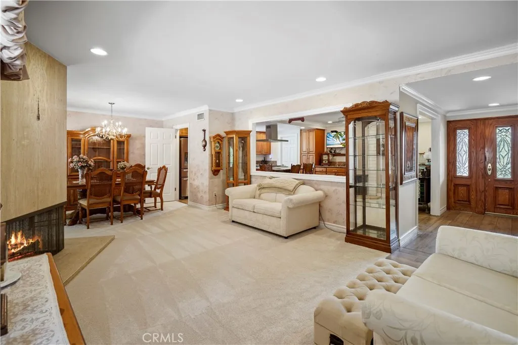 Step into 11300 Dulcet Avenue, a beautifully maintained traditional residence nestled in one of Porter Ranch's most sought-after neighborhoods. This spacious 5-bedroom, 3-bathroom home offers 2,436 square feet of well-designed living space on a generously sized lot, ideal for Buyers that value comfort, privacy & room to grow. As you approach the home, you'll be charmed by its classic curb appeal and serene setting. Step inside to discover a warm & inviting floorplan featuring a formal living room accented with an elegant fireplace that can be enjoyed by the adjoining dining room with French door overlooking the covered patio area & yard. The country-style kitchen captures the heart of the home, complete with ample wood cabinetry, granite counter tops that extends to the breakfast bar area ideal for your morning coffee rituals. The cozy family room is perfect for everyday living or your casual gatherings. Downstairs, you'll find two secondary bedrooms with a hall bathroom as well as the primary bedroom with en-suite bathroom offering direct access to the side yard. Upstairs features two additional bedrooms plus a 3/4 bathroom. Here's the best part, the Great Room, a room that provides incredible flexibility with panoramic views, this room can easily serve as a sixth bedroom, media room, playroom, or a private retreat for multigenerational living. The beautiful, secluded backyard is an entertainer's dream, framed by towering trees that create a peaceful and private atmosphere. Enjoy warm evenings dining "Al Fresco" at the custom bar-be-que island, gathering around the built-i