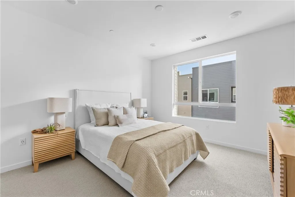 Welcome to Valley Villas, a private, gated community offering 58 all-electric, tri-level townhomes designed for modern urban living. Conveniently located just minutes from the 405 freeway, this home provides quick access to everything you need, whether for work or play. This thoughtfully designed townhome features a 2-car garage and a welcoming foyer on the ground level. The second floor is all about open, modern living with 9-foot ceilings, a bright dining room, and sliding doors that lead to a balcony, perfect for enjoying fresh air and natural light. The kitchen is centrally located, making it ideal for both relaxing and entertaining. A powder room on this level adds extra convenience for guests. On the top floor, you'll find the primary bedroom suite, complete with a walk-in closet. The secondary bedroom also includes en-suite bathroom, offering privacy and comfort. The laundry area is conveniently located on this floor as well, making daily tasks a breeze. Savor the Savings with our Fall Blue Tag event! For a limited time, take advantage of rates as low as 4.8% with our preferred lender Great Western Home Loans. Save hundreds on your monthly payment on move-in ready homes