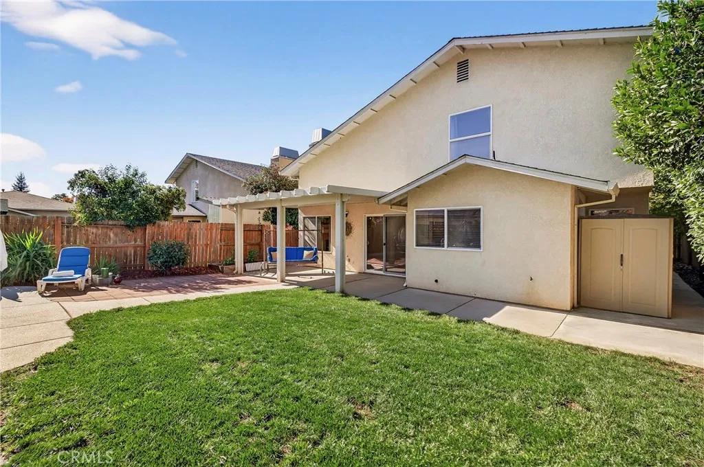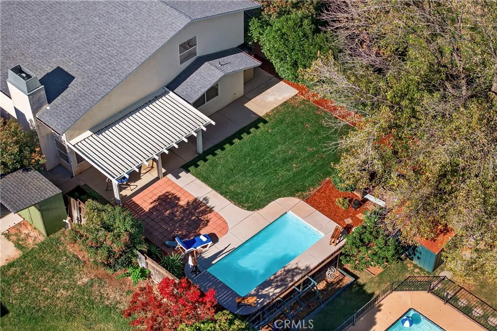 Welcome to La Casa Courta peaceful cul-de-sac with no through traffic, offering the perfect blend of privacy and convenience for family living. This charming 3-bedroom, 2.5-bath home features soaring ceilings, spacious living areas, and an abundance of natural light throughout. Step into the formal living room, where elegant tile flooring and a cozy gas fireplace with a classic mantel create a warm and inviting space for both relaxing and entertaining. With two generous living areas, the home provides flexibility for everything from family movie nights to hosting guests. The thoughtfully designed kitchen is tucked away for added privacy and offers ample counter space and storage. It flows seamlessly into a spacious dining area, making everyday meals and gatherings effortless. A large laundry room with plenty of storage, along with a convenient half bath, completes the main level. Upstairs, the private primary suite features dual closets and an en-suite bath, creating a comfortable retreat. Two additional bedrooms share a well-maintained full bath, providing plenty of room for family or guests. Step outside to a beautifully landscaped backyard designed for year-round enjoyment. A covered patio and sparkling in-ground pool make it ideal for relaxing or entertaining, while additional space offers the opportunity to create your own vegetable or fruit garden. Ideally located just minutes from Bidwell Park and within walking distance to Pleasant Valley High School, Marigold Elementary, and Bidwell Junior High, this home combines a serene setting with everyday convenience. Shoppin