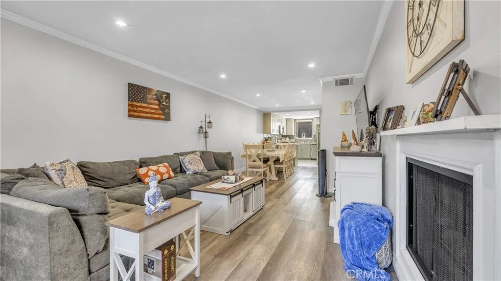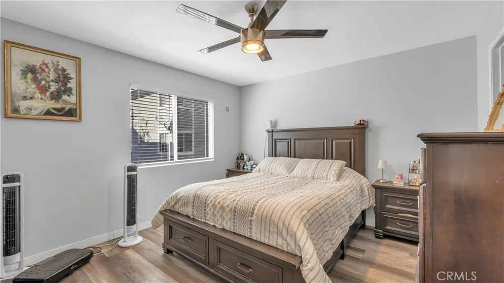 Beautifully Maintained American Beauty Village Condo! Step into this gorgeous and well-cared-for home featuring an open-concept living and dining area with stylish laminate flooring and a cozy fireplace. A sliding glass door opens to a private balcony with pleasant neighborhood viewsperfect for relaxing or entertaining. The charming kitchen offers louvered-style cabinetry and crisp white countertops, creating a bright and inviting space. Convenient indoor laundry closet in the hallway fits a stackable washer and dryer. The primary bedroom includes a private ensuite bath with a walk-in shower, while the spacious secondary bedroom is served by another full bathroom with a tub/shower combo. Both kitchen cabinets and bathroom vanities have been freshly painted, and newer windows throughout the home bring in plenty of natural light. The HVAC system is also newer for added comfort and efficiency. Enjoy the communitys wonderful amenities, including a sparkling pool, soothing spa, and lush greenbelts with walking paths for outdoor enjoyment.