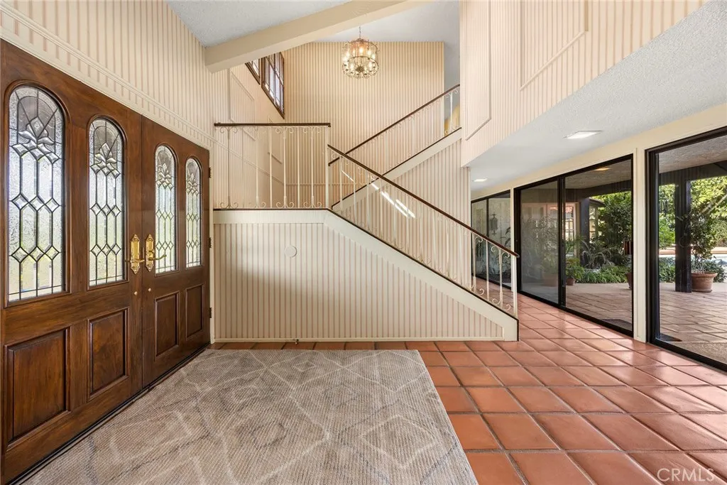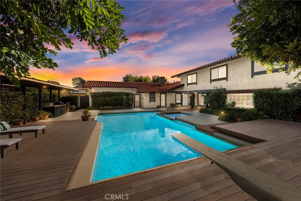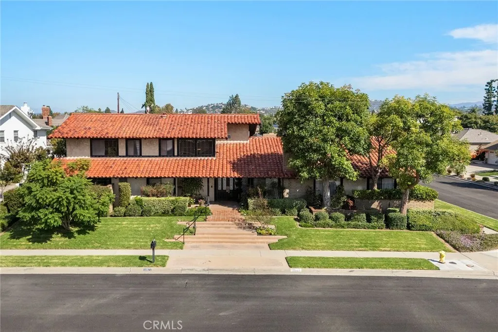 Welcome to one of the finest neighborhoods in Tustin with wonderful homes on large lots and this home that is custom built on a corner lot. Truly this is a home built with love and enjoyed for decades by this family. Spacious is the key word for this property and house. Features that are sought after are found here. Do you want first floor living? Of course, and this home has that feature. You would like to have an office space? Yes, and it is wood paneled with a couple of secret doors. How about a very spacious primary bedroom? You have that here, with big windows that look out to the backyard and French doors that exit to the patio. Do you like to host large events? Ok, then look at the living room with a beautiful fireplace covered by marble and can accommodate people as does the dining room. This home has style, ambiance, and elegance. The home has Spanish touches with tile floors that cover the entry and the halls and the kitchen floors. Come on in through the beautiful double door entry and notice the view of the backyard through a wall of windows that greet you. The main floor has the massive primary bedroom suite and elegant primary bath that includes a walk-in closet and double sinks with a marble countertop and vanity area. Separate tub and shower and a private toilet room. An atrium gives light to the bath area. With a family room with another fireplace and windows that enjoy the view of the pool and backyard as well. The heart of any home is the kitchen, and this one gives you a five-burner stove and a combo microwave and oven that are newer. Lots of counter spa