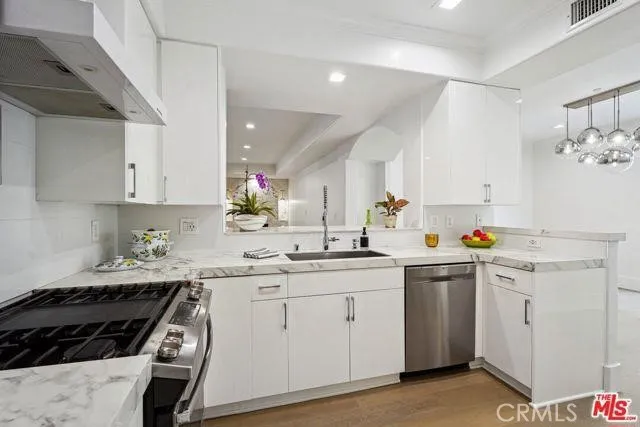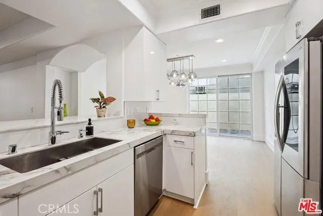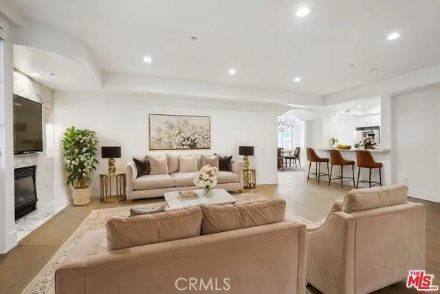 *BEST PRICED CONDO IN THE AREA!*HOA ONLY $700!* This highly desirable Westwood luxury condo is spacious, stunning and completely renovated like new! The total SQFT is 2154 including the balcony & huge private side patio (1820 SQFT on title). The space is well balanced with large living room and fireplace that connects to front facing balcony. Formal dining room adjacent to kitchen opens to oversized patio, which encompasses the entire length of the unit, and makes for great al fresco dining/entertaining. Kitchen w/high end stainless steel appliances, and both kitchen and all bathrooms with polished porcelain counter tops. Spacious primary bedroom suite with fireplace, walk-in closet w/built-ins, and opulent attached bath, featuring frameless shower door, freestanding tub, LED mirrors. Secondary bedroom and addition full bathroom off hall. Additional features include new wide plank wood floors, dual pane windows/doors, recessed lighting, white shaker doors, side by side laundry closet, and so much more. Building has a community gym and guest parking. Great proximity to Westfield Century City mall, Westwood Village and UCLA. Photos have been virtually staged.
