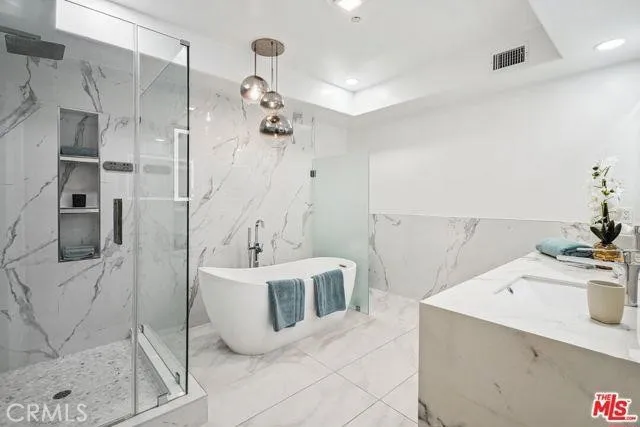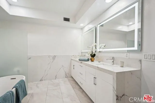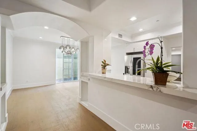 *PRICE REDUCED*SELLER MOTIVATED* This highly desirable Westwood luxury condo is spacious, stunning and completely renovated like new! The total SQFT is 2154 including the balcony & huge private side patio (1820 SQFT on title). The space is well balanced with large living room and fireplace that connects to front facing balcony. Formal dining room adjacent to kitchen opens to oversized patio, which encompasses the entire length of the unit, and makes for great al fresco dining/entertaining. Kitchen w/high end stainless steel appliances, and both kitchen and all bathrooms with polished porcelain counter tops. Spacious primary bedroom suite with fireplace, walk-in closet w/built-ins, and opulent attached bath, featuring frameless shower door, freestanding tub, LED mirrors. Secondary bedroom and addition full bathroom off hall. Additional features include new wide plank wood floors, dual pane windows/doors, recessed lighting, white shaker doors, side by side laundry closet, and so much more. Building has a community gym and guest parking. Great proximity to Westfield Century City mall, Westwood Village and UCLA. Photos have been virtually staged.