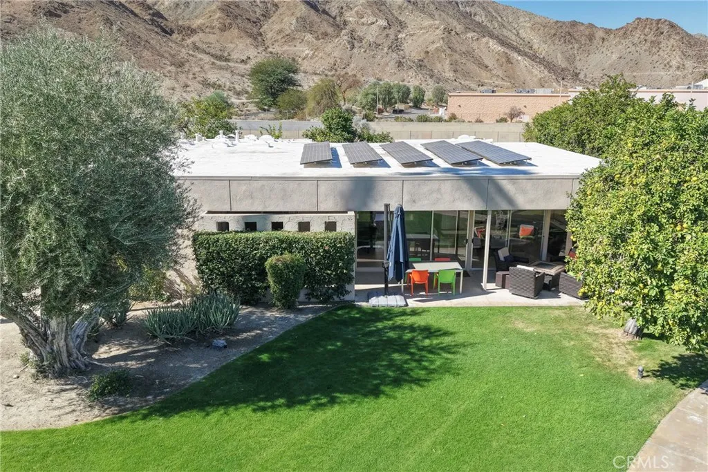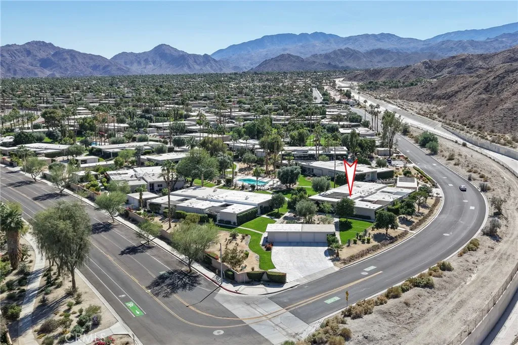 Ideally situated within the highly coveted Sandpiper Circle 17, 72229 El Paseo Unit 1715 is a timeless showcase of mid-century modern design. Conceived in the late 1950s as an innovative approach to luxury living, Sandpipers distinctive pinwheel layout arranges residences around sparkling pools and lush shared gardensframing dramatic mountain vistas while offering privacy and a sense of community. This stunning residence preserves the integrity and charm of its original design while embracing contemporary comfort and convenience. The open-concept layout features three spacious bedrooms, each with sliding doors that blur the line between indoor and outdoor living. Every bedroom enjoys its own beautifully updated ensuite bath, and the primary suite includes both a soaking tub and separate shower. The chefs kitchen marries modern design with high-end finishes, including Quartz countertops and top-tier appliancesa Fisher & Paykel refrigerator, Viking cooktop and oven, Viking microwave/convection oven, and Bosch dishwasher. Expansive living and dining areas are defined by ascending ceilings, clerestory windows, and walls of glass, creating a light-filled environment that highlights the homes architectural pedigree. A fully owned solar system with LG battery backup ensures energy efficiency and peace of mind. Outdoors, the home offers two exceptional entertaining spaces: a private mountain-facing courtyard that invites tranquil mornings and quiet reflection, and a poolside patio ideal for gatherings, surrounded by lush landscaping with direct access to the community pool. A two-c