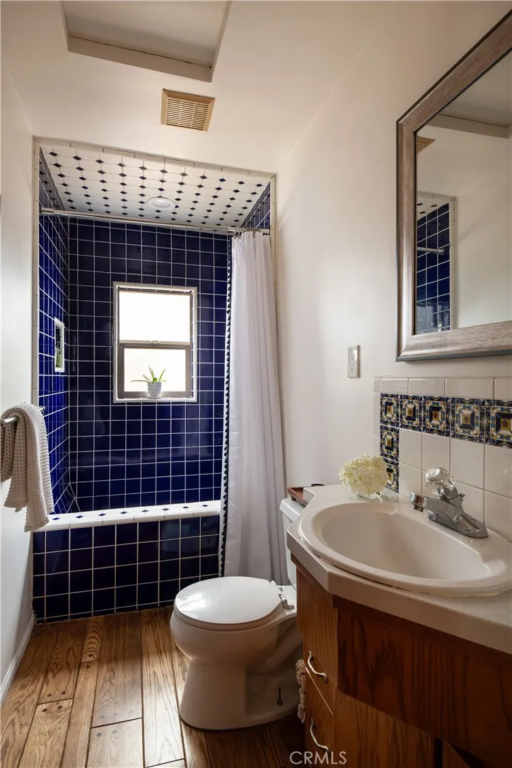 Perched above the trees and just moments from the towns of Lake Arrowhead and Cedar Glen, this level entry vintage gem with treetop and lake views is the perfect cozy retreat. Perfect for full-time living or part-time use, this home is also a successful short-term rental with an active Airbnb licensemaking it a turnkey investment opportunity. Elements of thoughtfully curated and elevated design details create a unique experience. Upon entry, an oversized mudroom with terracotta floors and wall-to-wall windows provides ease of use for every season and an abundance of storage. Through the charming kitchen with oak floors and an island is the open concept and spacious living area with a cozy wood burning stone fireplace, tongue and groove pine throughout and a charming window seat among custom built-ins. Enjoy meals in the dining space with a breathtaking wall of windows and views. The first guest bedroom is tucked away with wraparound windows creating a luxurious space with extra privacy. An additional bedroom and the sweet vintage bathroom complete the first level. A gorgeous hand-built solid wood spiral staircase is a work of art in this home. This alluring piece of craftsmanship leads you to the large primary bedroom with a bay window seat open to a private patio. The outdoor space is abundant with two separate seating areas and situated on a rare double lot, the expansive open space next to the home offers endless possibilities for expansion or customization. This turnkey offering provides peaceful mountain living near numerous hiking trails, the famous malt shop, Cedar G