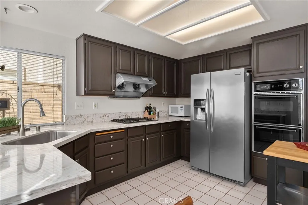 DISCOVER THIS STUNNING HOME! This spacious residence offers a blend of architectural charm and functional living, made completely move-in ready with a freshly painted interior and exterior living spaces! The property is conveniently located within easy walking distance to acclaimed, award-winning schools. FANTASTIC BUY! This stunning two-story home is perfectly situated on a desirable corner lot in one of Rancho Cucamonga's most highly sought-after neighborhoods. The excellent curb appeal features attractive, low-maintenance landscaping with mature palm trees, decorative brick borders around the plant beds, and a private, gated, brick-paved side courtyard/patioperfect for a morning coffee or an intimate outdoor sitting area. Step inside to a dramatic, light-filled entryway featuring soaring two-story vaulted ceilings and an elegant staircase. The formal living room is sun-drenched and spacious, leading back to the open-concept family area where a cozy brick-surround fireplace creates a perfect gathering spot. The kitchen is a true highlight of this lovingly maintained home, featuring repainted dark-wood cabinetry and updated granite countertops, a modern stainless steel undermount sink and contemporary high-arc faucet, a gas cooktop, a built-in double oven, and a newer dishwasher, alongside a sunny breakfast nook. The downstairs indoor laundry room offers maximum convenience. Retreat to the massive Primary Suite, an oasis complete with vaulted ceilings and a spa-like en-suite bath featuring a soaking tub, separate glass-enclosed shower, a double vanity, and a custom-organiz