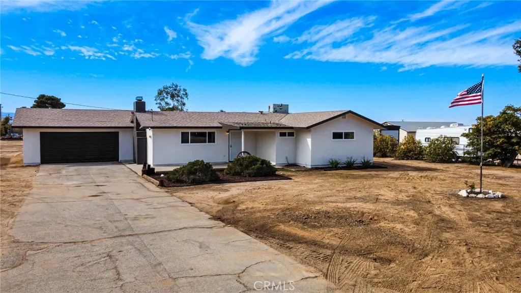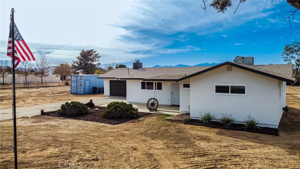 Situated on over one acre this gorgeous 2-bedroom two bath home has been meticulously remodeled, thus putting the perfect blend of modern amenities and mixing it with the natural beauty and tranquility of the high desert lifestyle. When you pull up to the private remote-control gate you will notice that the property is fully fenced. Then as you pull down the driveway into your 2-car garage which has direct access you will be greeted by an open floor concept. The kitchen has been updated with all new designer cabinets that are topped with White Quartz Countertops. The bathrooms have also been tastefully updated, thus matching the kitchen. Theres new Stainless-steel appliances, new flooring complete with all new base and case moldings throughout. Modern white windows can be found all throughout the home. The whole interior and exterior of the house has been primed/painted and the garage floor has been epoxied. The home features Central heating and AC along with numerous ceiling fans. There is a fully Finished/enclosed sunroom off the living room (approx. 26 x 10 feet) that is not included in the square footage, and behind the garage there is a fully finished arts & crafts/ workshop (approx.23 x 10). Words or pictures just simply do not do justice to this gem; you really must see it for yourself.