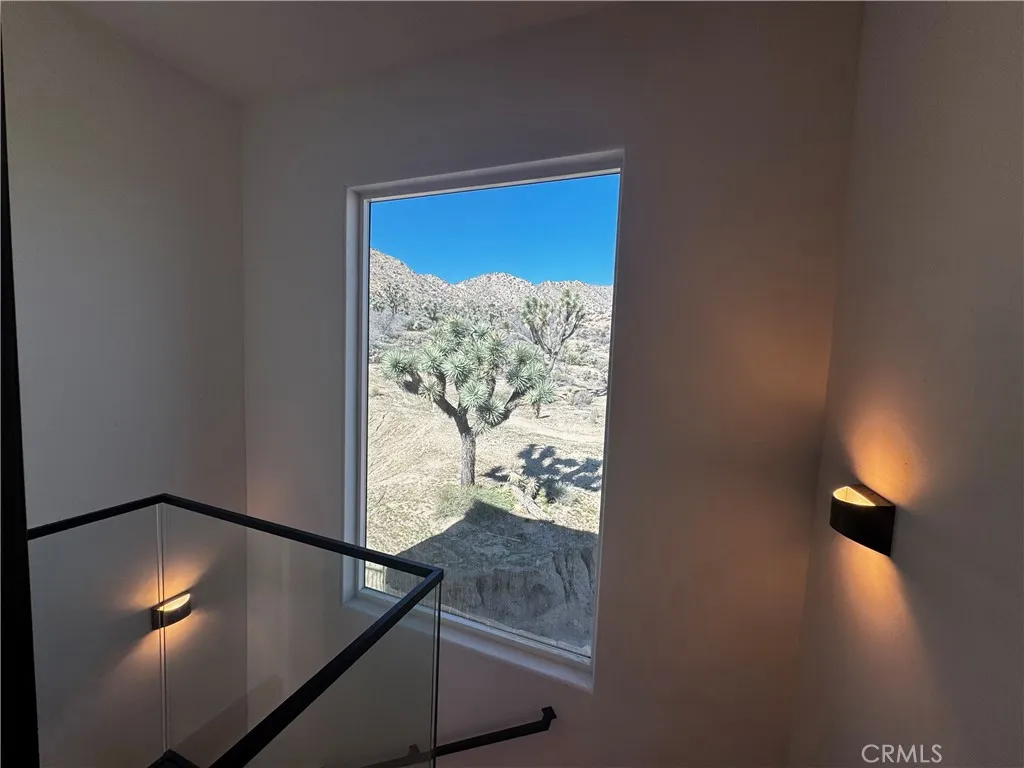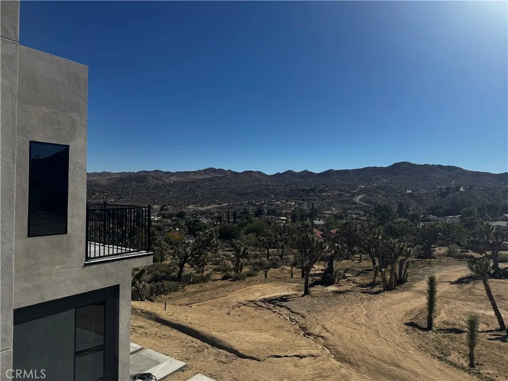 Brand-New Modern Luxury Home in the Coveted Country Club Area of Yucca Valley! Perched above the golf course on a rare 1.25-acre lot, this stunning contemporary home is currently under construction and expected to be completed in early 2026. Designed with modern sophistication and high-end finishes throughout, this property offers exceptional quality, privacy, and panoramic views of Mt. San Jacinto and the surrounding desert landscape. Step through the impressive tinted tempered glass 8-ft pivot door into an open-concept living space featuring 10-ft walls, coffered ceilings with LED lighting, and 8-ft folding patio doors that create seamless indoor-outdoor flow. The chefs kitchen boasts a massive 7x7 quartz island, full quartz slab backsplash, Cosmos stainless steel appliances, custom soft-close cabinetry, and LED-lit floating shelves. Additional highlights include polished concrete and engineered wood floors, black metal and glass stair railings, two 60 electric fireplaces, and zoned AC/heat pumps for every room. Each bedroom offers its own spa-style bathroom with LED mirrors, electric toilets, and designer tile showers. The luxurious primary suite features a sitting area, large walk-in closet, and private balcony with sweeping desert views. Energy efficient touches include solar readiness with battery connection, foam-insulated roofing, and a 50-gallon electric heat pump water heater. Outside, enjoy nearly 100 protected Joshua Trees, a circular driveway, a new septic system, and a 20x30 concrete pad ideal for a future pool, fire pit, or Ramada. A rare opportunity to own a