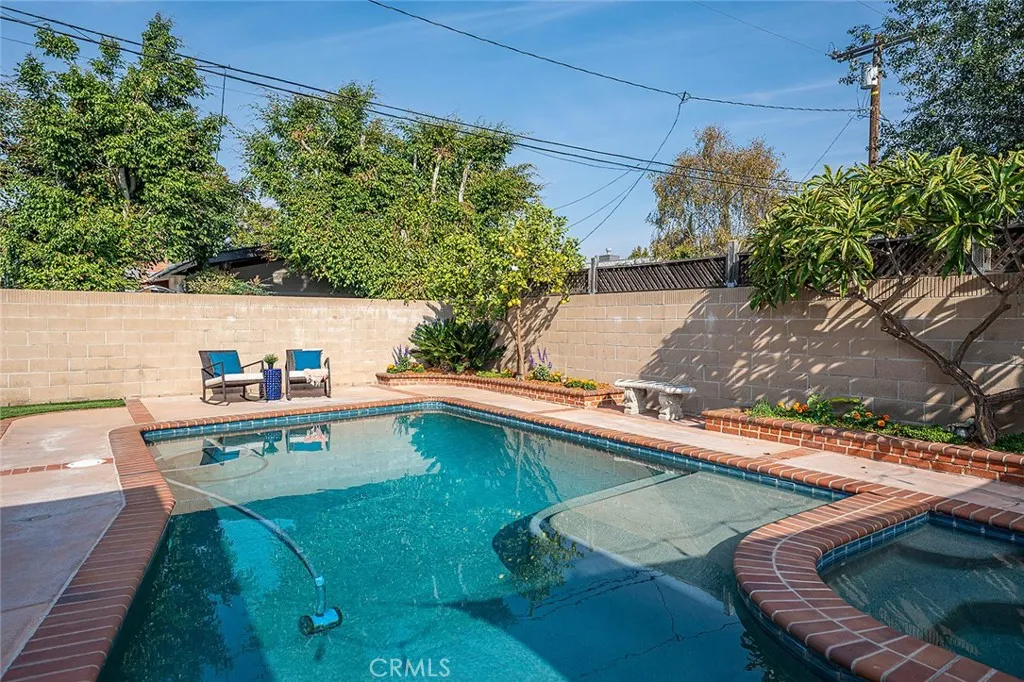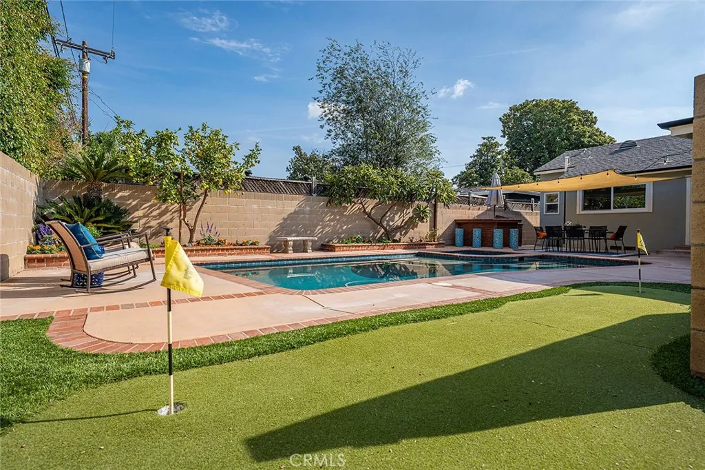 Nestled in the heart of Los Altos, this lovely pool home is a perfect blend of charm and modern amenities, offering you the ideal living experience. As you approach, the flagstone walkway and steps lead to a welcoming front porch, setting the tone for the warmth and elegance inside. The homes original hardwood floors add a touch of timeless elegance, while the living rooms picture window, cozy fireplace, and adjacent dining room, create a relaxing and cozy atmosphere. The heart of the home, a beautifully remodeled kitchen, features custom cabinetry, a farmhouse sink, stainless steel appliances, a glass-tile backsplash, wood accents, and quartz countertops with a large breakfast bar, and leads to a family room, ideal for entertaining with its seamless access to the rear yard. Step outside to discover your own private backyard oasis, with a sparkling swimming pool and spa, patio area, and built-in barbeque area. The outdoor space offers leisure and fun with room for gardening and even a putting green! Back inside, the residence features 3 bedrooms and 2 bathrooms, including an expanded primary bedroom with an en-suite bath. Additional features of this home include Milgard windows, new siding installed in 2020, and refreshed elements with new hardware, plumbing, and light fixtures throughout. The home has been freshly painted, making it completely move-in ready. The long gated driveway leads to a two-car detached garage, and a permitted storage shed with a mini-split air system makes it a perfect workshop or office space. Located in one of Long Beachs most sought-after neighb