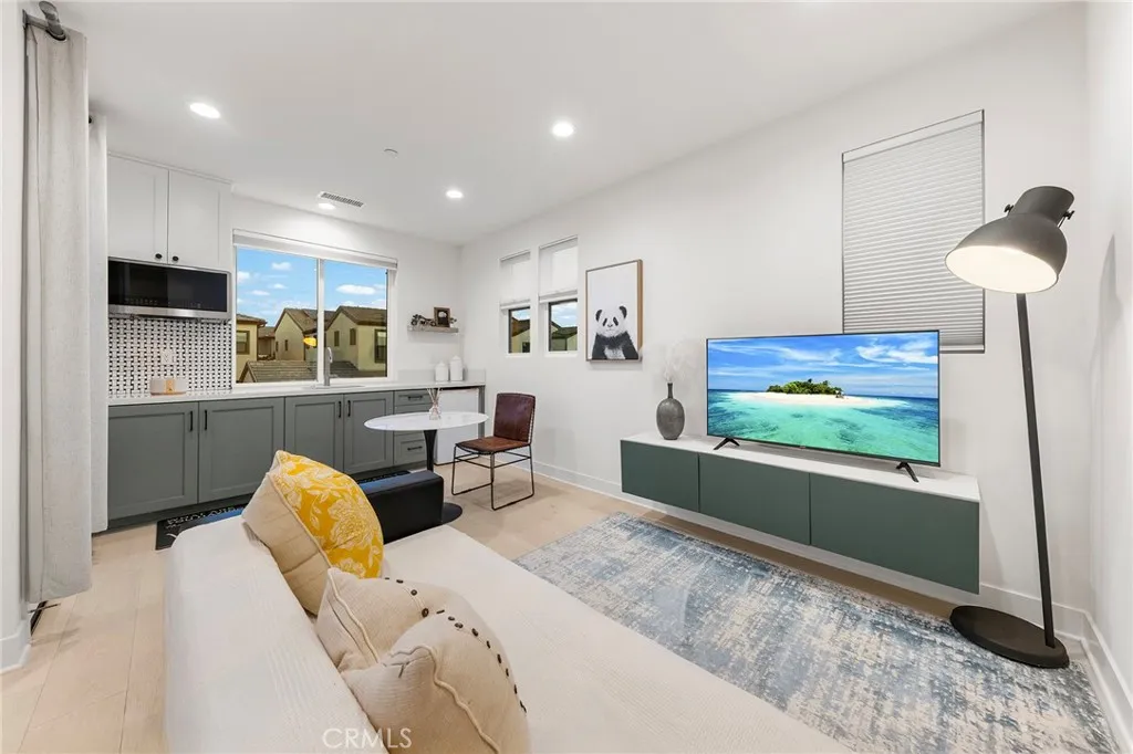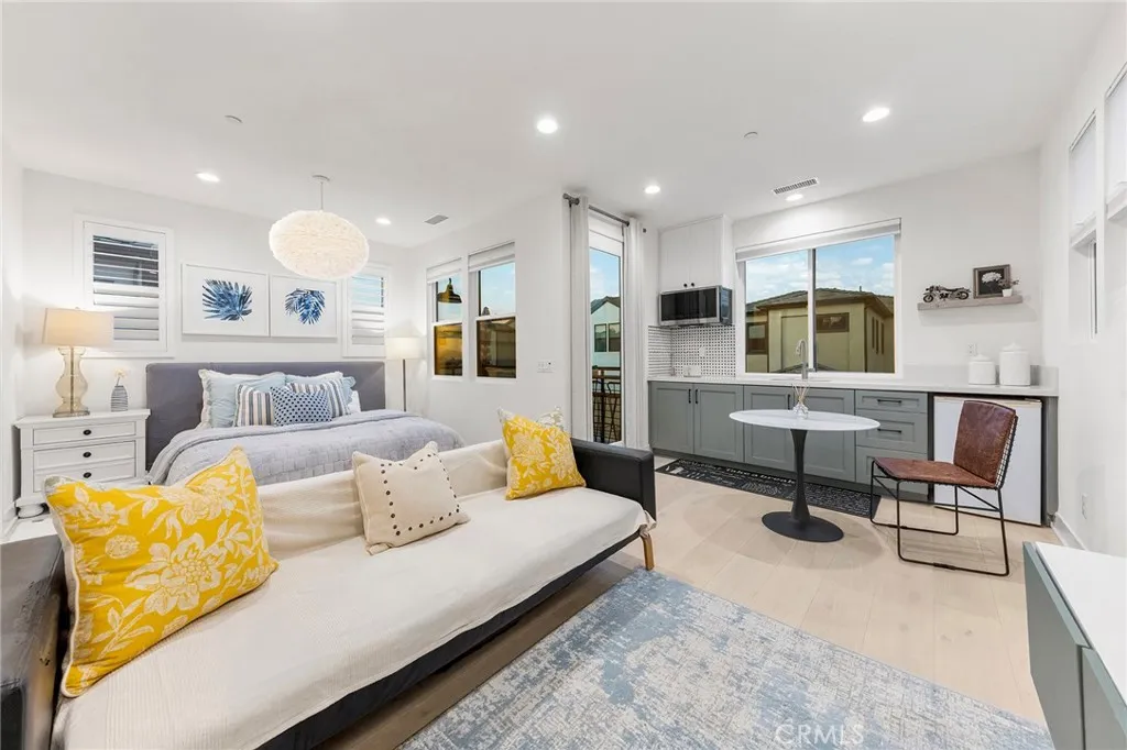 Welcome to 134 Aspect, where contemporary architecture and timeless elegance define the essence of California living. Bathed in natural light and ideally situated within one of Irvines most sought-after communities, this stunning home blends sophistication, comfort, and function in every detail. Step inside to discover an open-concept first floor thoughtfully designed with wide-plank hardwood floors, custom wall paneling, Electric window treatments and a sleek modern fireplace blending warmth, sophistication, and style in perfect harmony. The kitchen flows seamlessly into the dining and living spaces, highlighted by designer lighting and soft natural tones. When the sliding doors open,the indoor and outdoor spaces merge effortlessly, revealing a tranquil central side courtyard that connects every corner of the home with nature perfect for al fresco dining or quiet evenings under the California sky. A spacious ensuite bedroom on the main level provides comfort and convenience for guests or multi-generational living, while an extra-large under-stair storage area adds practical functionality. Upstairs, huge loft greets you to the primary suite features a luxurious oversized walk-in closet and a private balcony perfect for morning coffee or sunset relaxation. The JADU studio impresses with its premium finishes, built-in refrigerator, sink, microwave, and range hood, plus a private exterior balcony and staircase and separate entrance ideal for extended family, guests, or rental income flexibility. The fourth spacious bedroom completes the upper level, highlighted by exceptio