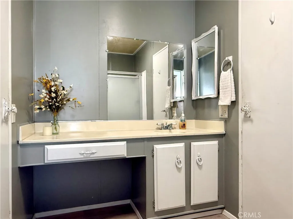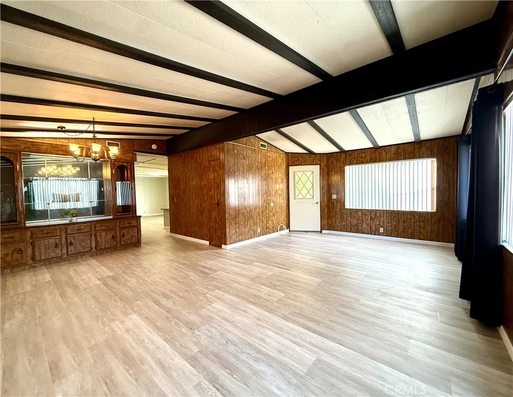 Back on the Market! Welcome Home! Heres your chance to own a spacious and well-maintained manufactured home offering 1,440 square feet of comfortable living. This desirable end unit features 2 bedrooms and 2 bathrooms, providing enhanced privacy and the rare benefit of a private, peaceful yard. Enter into the bright, oversized living room, the beamed ceilings and built-in storage add extra character and a welcoming atmosphere. The home has been recently upgraded with brand new vinyl flooring throughout. The kitchen is equipped with updated appliances and offers significant storage, including a dedicated pantry. The kitchen opens up to the den with sliding glass doors to the backyard creating a great flow for personal interaction with family and guests. The private primary suite provides a large closet and additional built-in storage. The attached, large bathroom features a walk-in shower, a separate deep soaking bathtub, double sinks, and a vanity area. A separate laundry room offers additional storage, enhancing the home's functionality. This property provides the opportunity for affordable living without sacrificing amenities. Residents enjoy access to a full suite of community facilities, including a refreshing pool and spa, a tennis court, a clubhouse, and an on-site convenience store. Combining generous space, quality updates with the opportunity to add your own style, a private outdoor area, and comprehensive community amenities, this manufactured home is an outstanding value and a must-see!