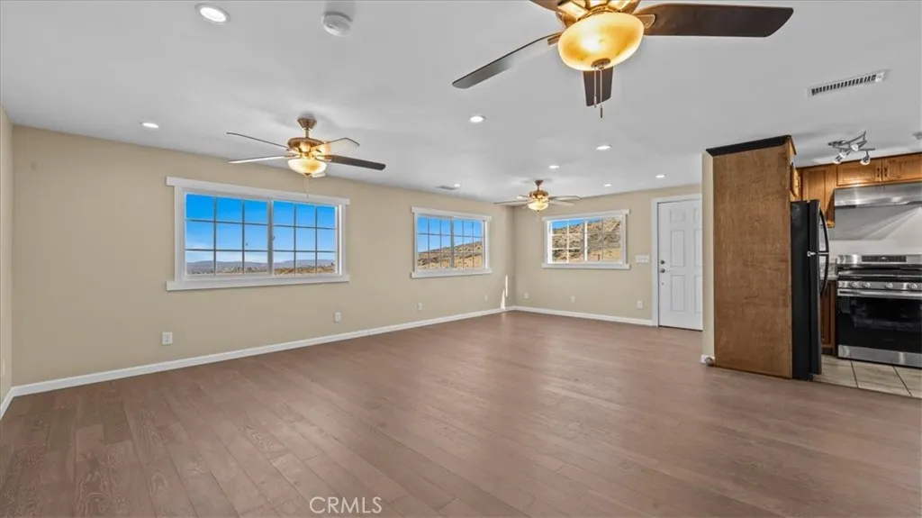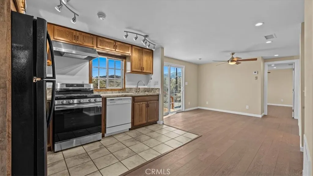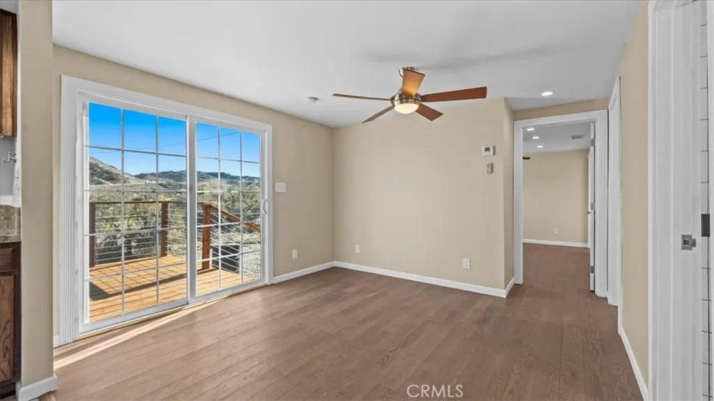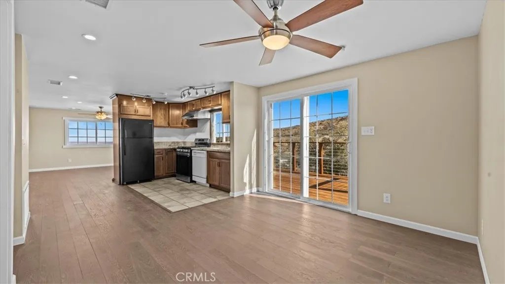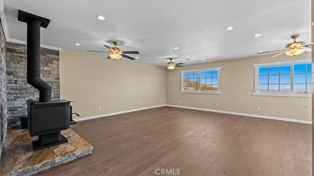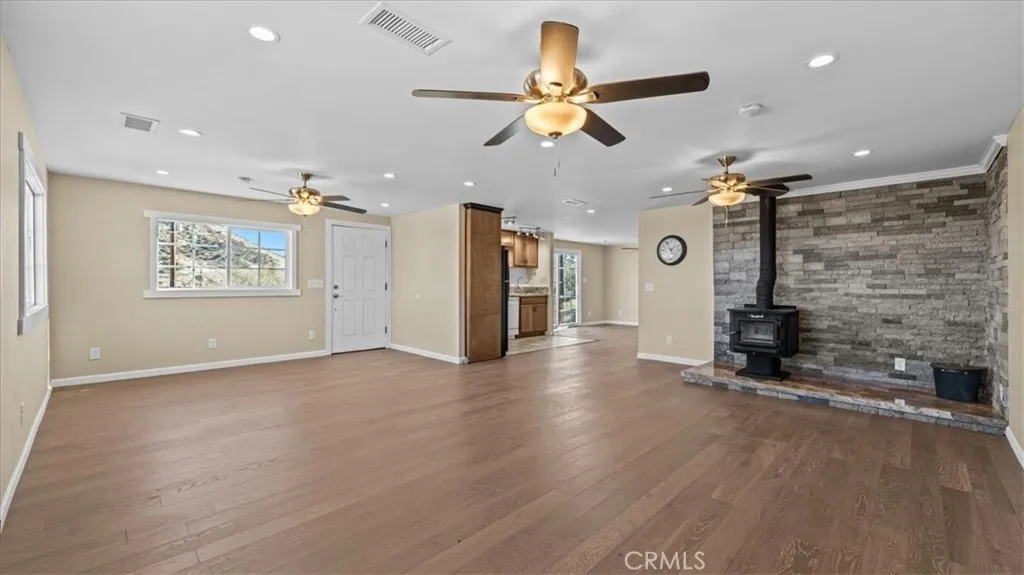 Escape to peaceful country living in this beautifully updated 2 bedroom, 2 bath manufactured home situated on 5 acres of land. Surrounded by wide open views and a quiet rural backdrop, this property offers the perfect mix of privacy and comfort. Inside, youll find an inviting open floor plan with laminate flooring, recessed lighting, and ceiling fans throughout. The spacious living room features a cozy wood-burning stove with a stacked stone accent wall, creating a warm and welcoming feel. The kitchen features track lighting, and ample counter space, open to a dining area with sliding doors that lead out to a large wood deck, a great spot to enjoy the peaceful surroundings. Both bedrooms are bright and comfortable, and the bathrooms feature tile finishes and updated fixtures. With 5 acres of land, theres plenty of room for your animals, RVs, or outdoor projects. This home also comes with 4 water shares. This home offers a relaxing lifestyle with room to grow and enjoy the natural beauty around you.