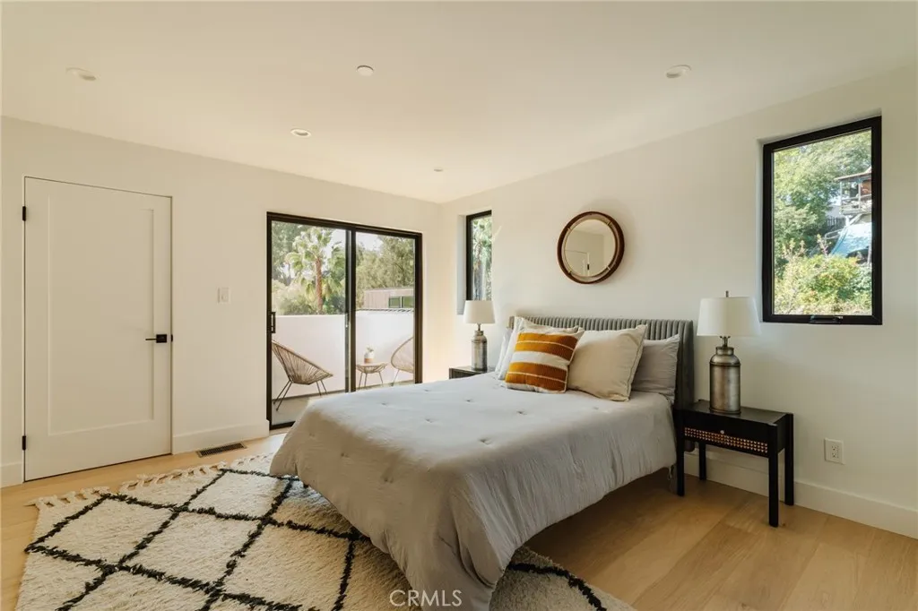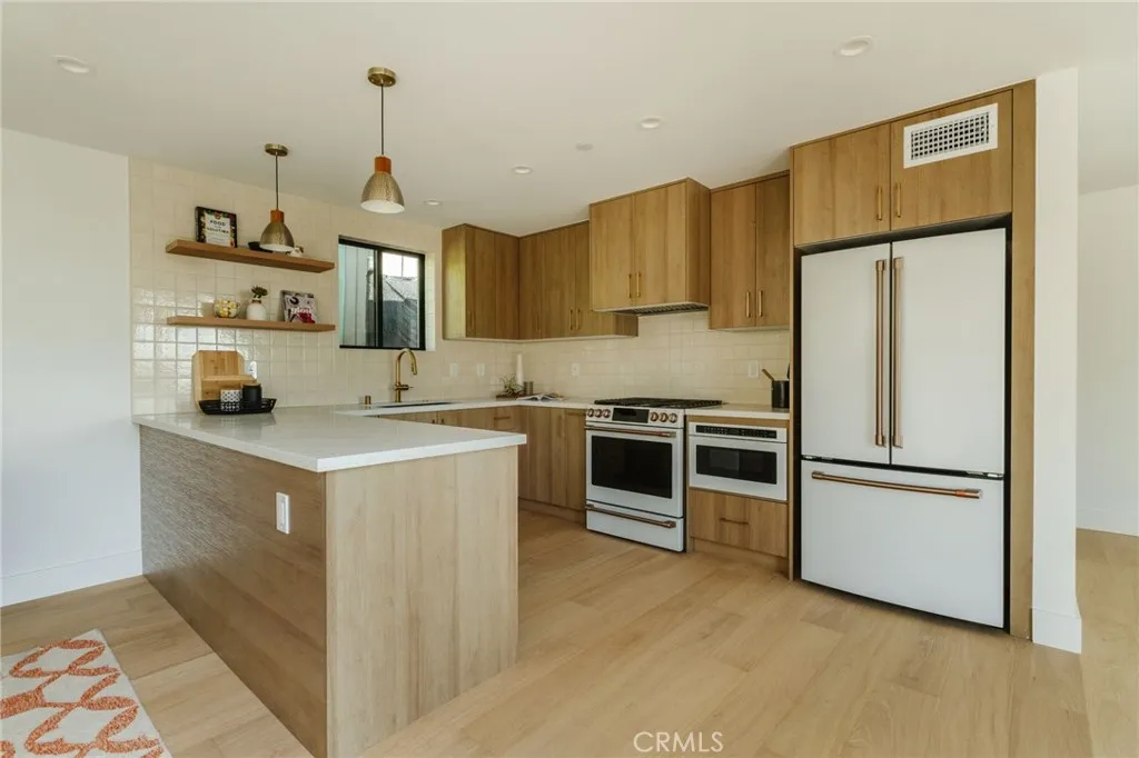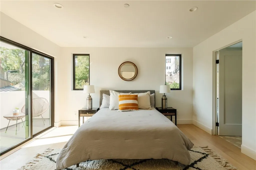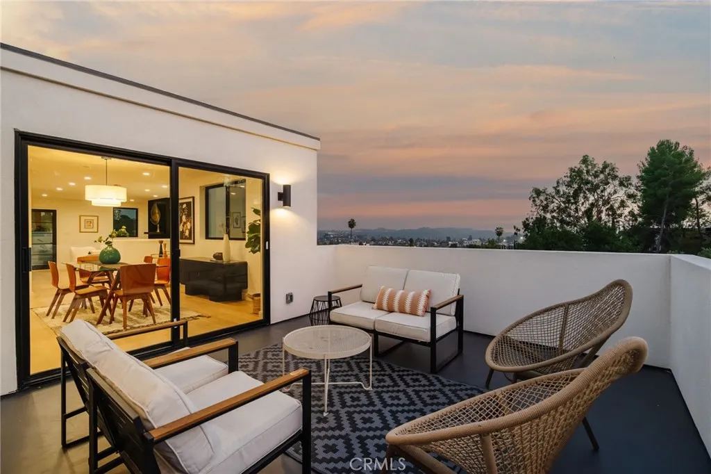 Situated on the bend of a hill, this light-filled, newly constructed home spans three bedrooms and two-and-a-half bathrooms across almost 1,700 square feet. City and nature views greet you at each perfectly positioned window, making for breathtaking vistas, particularly at night when twinkly lights illuminate York Valley. The main level includes two sitting areas in addition to a spacious dining area, framed by beautiful views, plus a patio off the kitchen to allow for al fresco dining. The impressive kitchen comes with quartz counters, floating shelves, a peninsula, brass accents and matte-white Cafe appliances. Off the dining area is a half bath with feature wall and modern vanity. Downstairs, you will find all three bedrooms including a primary suite with attached bathroom, walk-in closets and balcony near two other bedrooms and one full bathroom. The two-car garage is at street-level and allows for parking two additional cars in the driveway. This home is full of many upgrades and designer finishes, including engineered wood floors (both upstairs and downstairs) and smart home features. Its also near freeways, and a skip and jump to Occidental College and the hippest spots on York Boulevard. With its perfect location, well-organized spaces and dreamy views, this new build property is a true trophy. Come make it yours today.