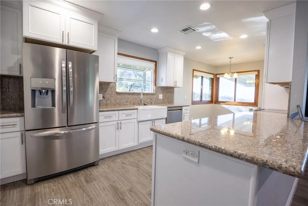 41443 Roaring River Ct is on 1.63 acres with sweeping mountain views in Yosemite Lakes Park ust 40 minutes south of the south gate to Yosemite National Park! 2 bedrooms | 2.25 baths | 1,712 sq ft (Extra 1/4 bath in garage) Updated kitchen and baths, attached 2-car garage plus a detached 2-car garage that easily be used for a shop. Pet friendly setup with fencing and kennel w/ its own bath area. Bright open interior, great flow, clean finishes and custom storage drawers and cabinetry. Located inside Yosemite Lakes Park with full community amenities golf, dining, trails, equestrian and more. A rare combo of usable land, views, garages, and updates move-in ready for you!
