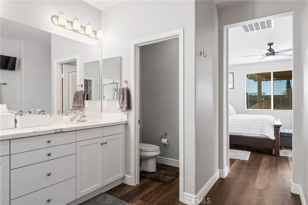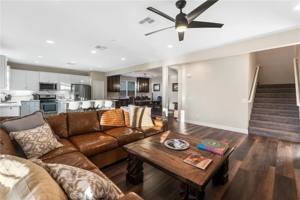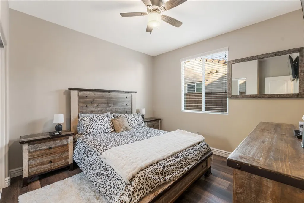 Beautiful Move-In Ready Home - See this before you buy elsewhere! Welcome to this beautifully maintained, turnkey home with fully landscaped front and back yards. New paint both inside and outside! Extensive recent upgrades throughout the home. Every detail has been thoughtfully cared for, allowing you to simply move in and enjoy. The property offers RV parking and a spacious epoxy coated three-car garage with post tension slab, providing plenty of room for vehicles and storage. Inside, youll find three bedrooms, including the primary suite, conveniently located on the main level, with a fourth bedroom and full bath upstairs. Upon entry, two bedrooms and a full bathroom are situated to the right, while further down the hall, an inviting formal dining room connects seamlessly to the kitchen and family room. The open-concept layout is perfect for everyday living and entertaining. The kitchen features elegant granite and quartz surfaces, white cabinetry, and updated fixtures, including a new sink and faucet. The family room showcases an entertainment wall with an electric fireplace, while the dining area includes custom cabinetry and matching quartz accents. The private primary suite includes a custom walk-in closet with built-in shelving and drawers, plus a spacious en suite bathroom with dual sinks, new quartz countertops, and updated fixtures. Every room is equipped with a mounted TV and new ceiling fans, including in the patio area for added comfort. Throughout the main floor, new flooring enhances the homes modern appeal. The stairs feature premium carpeting and dual rail