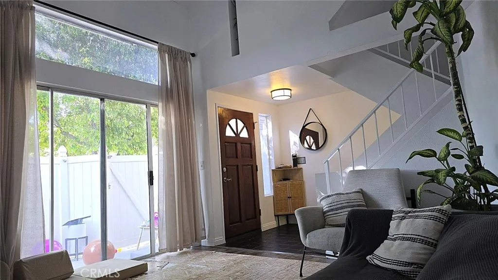 Desirable three-level townhome located in the city of San Fernando. This property features two bedrooms, including a spacious main bedroom with a walk-in closet and a private balcony that overlooks the green central area of the complex garden and pool. The good-sized second bedroom shares a full bathroom with the main bedroom on the third floor. On the main level, the living room is filled with natural light and includes a gas fireplace, perfect for gatherings during the winter. The dining area opens up to a small private patio, ideal for BBQs. The kitchen is bright and offers plenty of cabinet space, along with an additional closet that can be used as a pantry. There is also a guest bathroom on the second floor. The townhome includes an attached two-car garage on the first floor and a large storage area. The complex provides amenities such as a community pool, spa, grassy lawn, and BBQ area. Conveniently located near shopping areas, restaurants, and bus stops, this property is must-see.