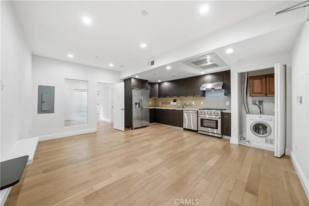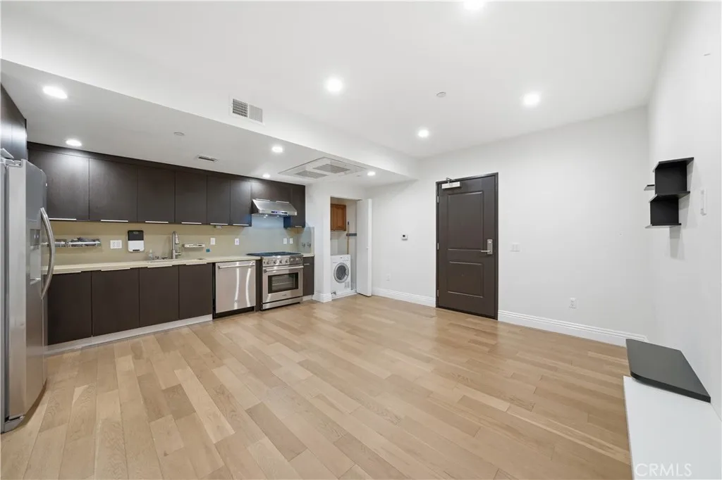 Experience stylish city living in one of LAs most vibrant and dynamic neighborhoods! This beautifully updated modern condo offers 1 luxurious primary suite . Designed with both comfort and functionality in mind, the open-concept layout seamlessly connects the living, dining, and kitchen areas, creating the perfect space for entertaining or everyday living. The sleek, upgraded kitchen features stainless steel appliances, quartz countertops, and contemporary cabinetry that complement the homes modern aesthetic. Additional highlights include recessed lighting, central air and heat, in-unit laundry. Enjoy peace of mind with 2 secured underground parking spaces and premium community amenities such as a sparkling swimming pool, recreation room, and a secured lobby entrance. Situated in the highly sought-after Koreatown neighborhood, youll be just minutes from Downtown LA, world-class dining, shopping, nightlife, and public transit.