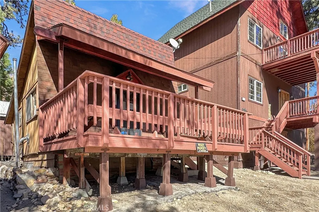 Charming Mountain Retreat in Green Valley Lake! Private and peaceful setting at the end of the road before entering the National Forest. This unique property features three separate structures with a total of 2,124 sq. ft. of living space. The main house offers an open living room, dining area, and kitchen with granite countertops and a center island, along with a main-level bedroom and bathroom. Upstairs features two bedrooms, a shared hallway bathroom, and a spacious primary suite with private deck and private bathroom with jacuzzi tub and separate shower stall. Detached garage and ample off-street parking. Located just minutes from Green Valley Lake, enjoy easy access to fishing, hiking, and ski resorts. Ideal for full-time living, a weekend retreat, or investment opportunity.