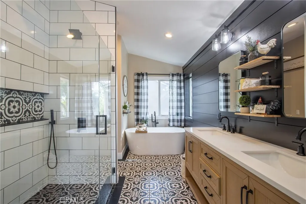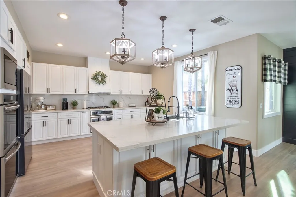 Welcome to your dream home! A completely remodeled, luxuriously designed 5 bedroom, 3 bath residence with a spacious bonus room and custom finishes throughout. Spanning approximately 3,000 square feet, this showpiece is located in one of Murrietas most desirable family-friendly neighborhoods, just a very short walk from Monte Vista Elementary School and surrounded by three nearby parks. Perfect for kids and families. Inside, youll find high-end finishes and thoughtful craftsmanship at every turn, including LVP+ flooring throughout, extensive custom shiplap walls, wood-framed windows and baseboards, Quartz countertops, and soft-close cabinets and drawers. The Chefs kitchen is an entertainers dream, featuring three ovens, all-new stainless-steel appliances, a large island, and 2 inviting dining areas ideal for large gatherings. The main level offers an open, airy layout with a cozy fireplace, a formal dining area, and a fully upgraded bathroom with a luxurious rainfall shower, alongside a convenient guest bedroom. Upstairs, discover three spacious bedrooms, a beautifully remodeled bathroom, a large bonus room, and a primary suite that feels like a retreat, complete with high-end finishes, a walk-in shower with dual rainfall shower heads, and an expansive walk-in closet. Additional features include solar panels with a backup battery, new ceiling fans, freshly painted interiors, a new stackable washer and dryer (included), and a three-car garage. Step outside to your private backyard with a relaxing above-ground spa and plenty of room for entertaining. This home truly has it al