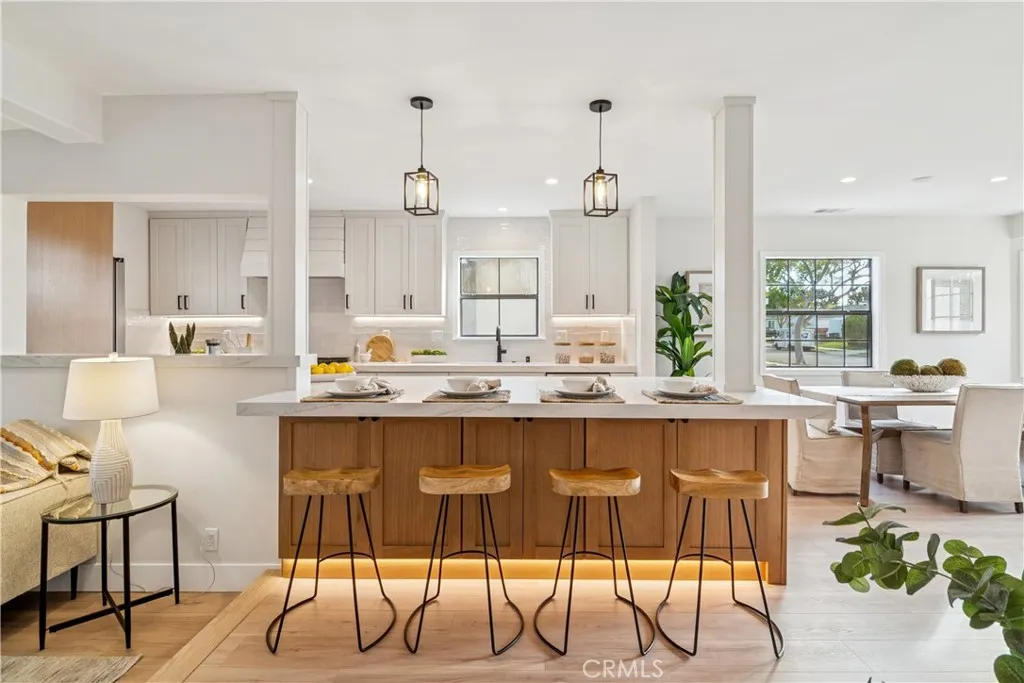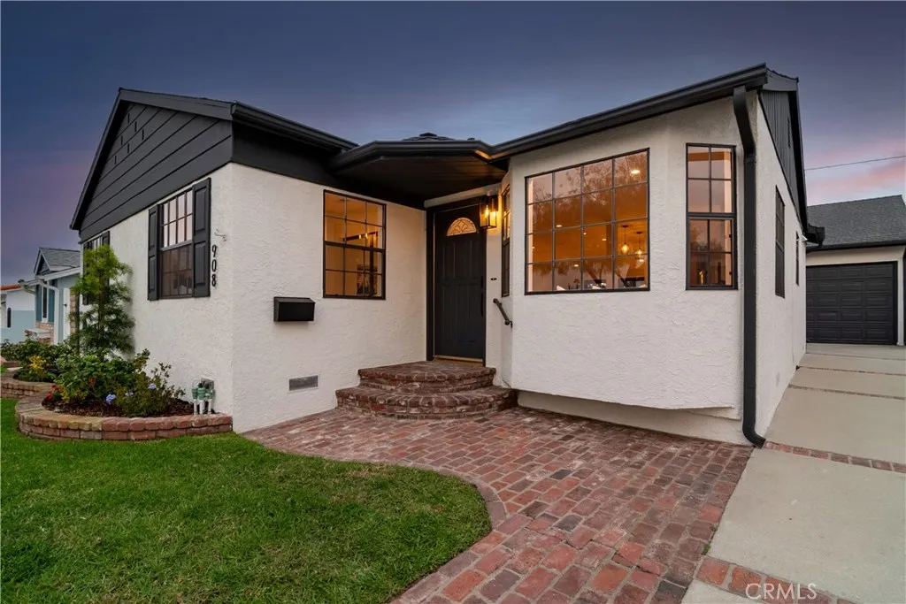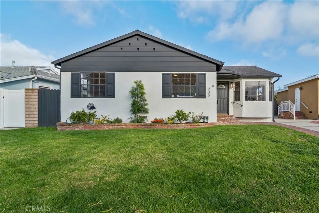 Step into a home that blends casual coastal elegance with everyday functionality. From the moment you walk in, youre welcomed by an open, airy layout filled with natural light and anchored by a statement-making shiplap accent wall in the living area. The space flows seamlessly into a beautifully styled kitchen featuring quartz countertops, stainless steel appliances, warm-toned cabinetry, and a large island perfect for morning coffee or hosting friends. The primary suite offers a quiet retreat with dual closets and a spa-like en-suite finished in striking marble tile from floor to ceiling. Two additional bedrooms provide flexibility for guests, home office, or family, while the second bathroom features double sinks and clean, modern finishes. Step outside to a backyard designed for Southern California living a pergola-covered patio, grassy area, and just the right amount of privacy for relaxing or entertaining. The oversized detached garage with tall ceilings offers plenty of room for storage, creative space, or future possibilities. With central air conditioning, ceiling fans in every bedroom, and curated design details throughout, this home offers comfort, character, and charm. Located in a well-established neighborhood close to top-rated schools, parks, dining, shopping, and just minutes to the beach it's a turnkey opportunity to live the South Bay lifestyle with style and ease.