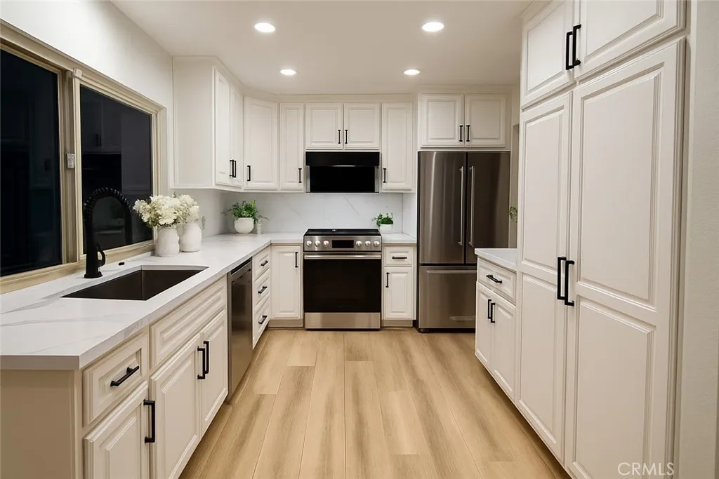 Beautifully upgraded 4-bed, 2.5-bath home in a quiet cul-de-sac near the park. Features fresh interior paint, brand-new vinyl flooring throughout, newer RUUD A/C, and epoxy-coated garage floor. The modern kitchen includes quartz countertops, Fotile range hood, gas cooktop, Bosch dishwasher, and upgraded fixtures. All bathrooms feature new quartz countertops, vanities, and faucets, with a fully remodeled primary bath.The front and backyard feature maintenance-free artificial turf and a custom aluminum patio cover, perfect for entertaining. The backyard is a gardeners paradise with mandarin, orange, pomelo, lemon, cherry, raspberry, avocado, camellias, colorful plumerias, and various roses. Equipped with SolarEdge HD Wave solar panels and a 2 kW backup battery. Ideally located near Mitsuwa, Tokyo Central, Trader Joes, Walnut Village Shopping Center, and award-winning College Park Elementary, with easy access to major freeways and shopping centers.