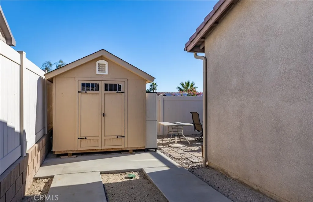 Experience desert living where comfort meets serenity at 64243 Eagle Mountain Avea beautifully maintained 3-bedroom, 2-bath single-level home located in the sought-after 55+ gated community of Mountain View Country Estates, adjacent to Mission Lakes Country Club. Spanning approximately 2,221 sq ft, this desert retreat blends resort-style sophistication with practical design just minutes from Palm Springs and the Coachella Valleys finest golf, dining, and entertainment. Step inside to a bright, open floorplan with vaulted ceilings, abundant natural light, and seamless indooroutdoor flow. The spacious living and dining areas open to a well-equipped kitchenperfect for hosting friends or enjoying a quiet morning coffee. Step out to the covered patio and take in breathtaking mountain views and glowing desert sunsets, offering a tranquil backdrop for relaxation or gatherings. The front courtyard welcomes you with an abundance of vibrant desert plants, creating a private, peaceful setting where guests are greeted by natural beauty and warm desert breezes. This inviting space offers the perfect spot to enjoy morning sunshine or an evening glass of wine surrounded by the sounds and colors of the desert. Designed for ease and enjoyment, this home features desert color interior paint finishes, updated vinyl flooring, a large primary suite with walk-in closet, and low-maintenance landscaping. Outdoors, enjoy dedicated RV parking with hookups, a private storage shed, and access to scenic walking paths that weave through this serene, gated neighborhood. A perfect blend of style, function