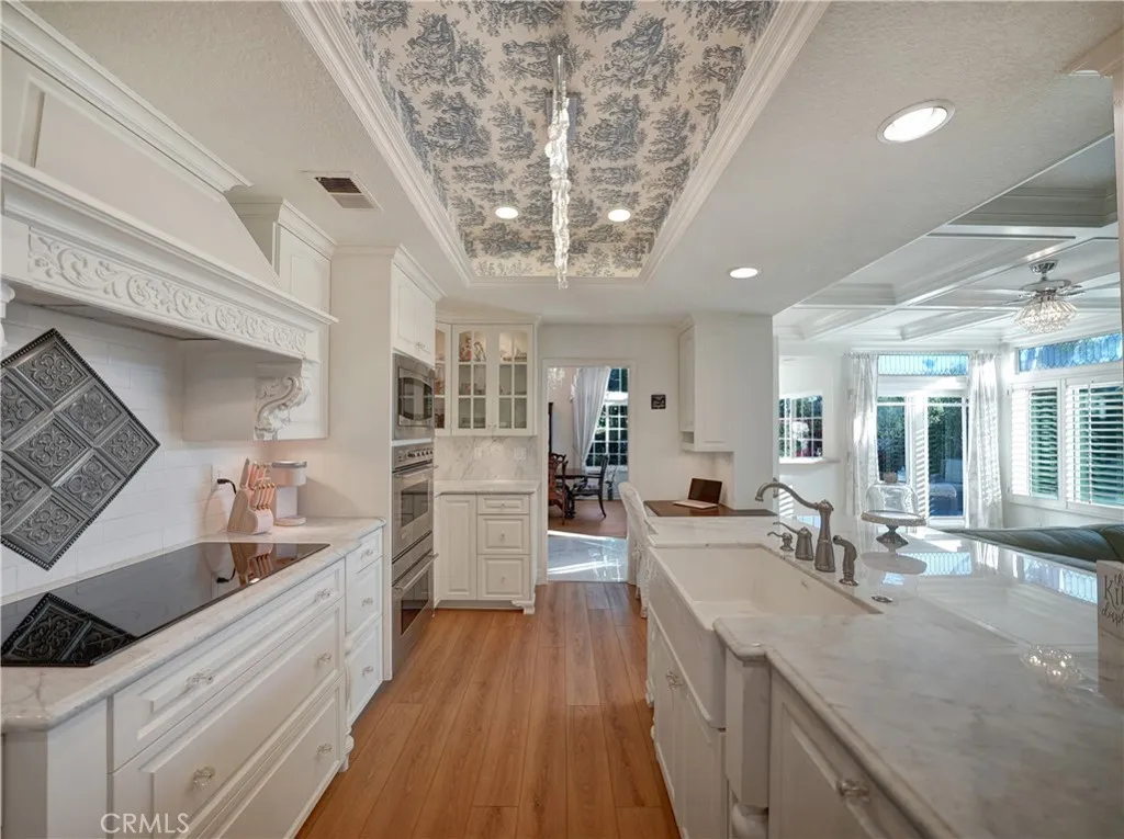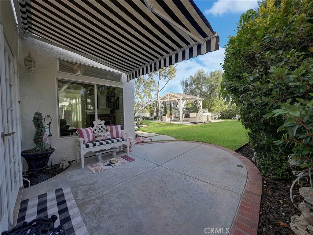 Are you seeking a prime location on a cul-de-sac view a spacious lot and views? Welcome to Harrington Court located in the esteemed community of Moulton Ranch. The Windermere floor plan in the Brock Estates boasts well-designed space featuring vaulted ceilings & abundant natural light. A marble-accented entryway leads you toward kitchen, setting the tone for the homes refined style. The Kitchen features thoughtful customizations and abundant counter space for your culinary endeavors, complemented by marble countertops, custom cabinetry, & upgraded appliances. The Kitchen, Family Room and spacious Breakfast Nook overlook a roomy backyard, inviting you to relax and entertain. The formal Dining Room & Wet Bar create a perfect setting for sophisticated dinner parties & family gatherings. The downstairs also includes a main-floor Bedroom, ideal for guests or home office, along with an adjacent bathroom & a separate indoor Laundry Room. The upstairs features a thoughtfully designed floor plan that optimizes space. The Primary Suite offers a luxurious retreat with high ceilings, dual walk-in closets, & spacious Bathroom complete with dual sinks, a separate soaking tub, & walk-in shower. Also included are a sitting area with a two-way Fireplace. Secondary bedrooms are equally inviting, featuring ample space & natural light to suit various needs, enhanced by vaulted ceilings. Step into your expansive outdoor retreat where a backyard oasis awaits. Featuring a covered Gazebo, ideal for alfresco dining, & a vast grassy lawn. Enjoy the convenience of an upgraded barbecue, perfect for ye