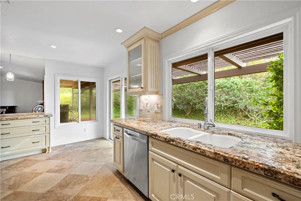 Welcome to 27972 Calle Casal A Truly Special Place to Call Home. Tucked away in a peaceful and private location, this beautifully updated Blanca model offers comfort, style, and modern living. Featuring 2 bedrooms, 1.5 bathrooms, and an attached garage, this home has been thoughtfully remodeled with quality finishes throughout. Step inside to a bright and open floor plan where the wall between the kitchen and living room has been removed to create an airy, spacious feel. The remodeled kitchen boasts custom cabinetry, granite countertops, a custom breakfast bar, and newer stainless-steel appliances including the refrigerator. Elegant stone flooring flows throughout the home, enhancing its sophisticated charm. The primary bathroom has been beautifully upgraded with a walk-in shower, custom stonework, built-in bench, and glass enclosure. Both bathrooms feature newer vanities, and the home is equipped with double-pane windows, sliding doors, recessed lighting, and a newer heating and air conditioning system for year-round comfort. Enjoy the outdoors on the large, secluded back patio, complete with a cover and breathtaking panoramic views perfect for relaxing or entertaining. A custom front door adds to the homes welcoming appeal. Set within a serene 55+ community spanning 484 acres of mature trees and rolling hills, residents enjoy resort-style amenities including two recreation centers, pools, spas, pickleball and tennis courts, lawn bowling, sport courts, gym/exercise room, billiards, clubhouse, and more. The HOA also covers exterior painting, front yard maintenance, trash
