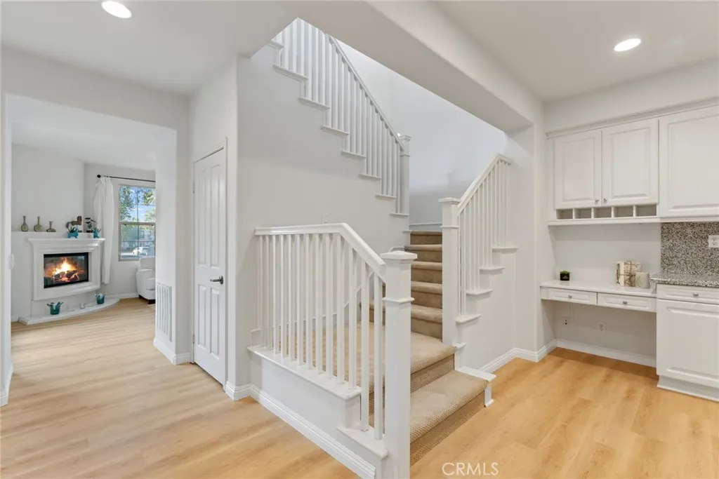 Beautifully refreshed detached home in one of Irvines most desirable communities. This 4-bedroom, 3-bath, 2,299 sq ft home sits directly across from a serene community park, offering open views and abundant natural light. Updates include new wood flooring, new carpet, and fresh interior & exterior paint, creating a move-in-ready environment. The open-concept main level features a spacious living area and a versatile downstairs bedroom with full bath. Upstairs, the primary suite is a true retreat with a double-door entry to a large private terrace overlooking the park, plus a walk-in closet, dual vanities, soaking tub, and separate shower. Two additional bedrooms are well-sized and share a thoughtfully designed bathroom. Upstairs laundry adds convenience. A welcoming front yard enhances curb appeal. The attached two-car garage provides ample parking and storage. Exceptional locationshort walk to elementary school, community center, pools, parks, and trails. Resort-style amenities and easy access to shopping, dining, and freeways. A rare opportunity to own a detached home with park-front views and private master terrace. A must-see!