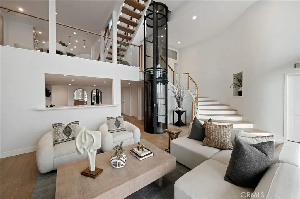 Framed by glimmering waterfront views, this masterpiece stands as a rare fusion of sophistication, serenity, and coastal allure. Nestled on the prestigious Huntington Harbour, this sanctuary is where the rhythm of the bay meets the pinnacle of waterfront luxury. A true jewel within the private gated enclave of Tennis Estates, where lush, cascading landscaping sets the tone for the serenity inside. Beyond the grand entrance, a three-story atrium bathed in natural light welcomes you, with soaring 20-foot ceilings creating an airy expanse that mirrors the vast waters beyond. Open living spaces are designed to dissolve the boundary between indoors and out, featuring a striking glass bay wall that frames uninterrupted views of the ever-changing waterfront canvas. A versatile living room flows seamlessly onto the spacious bay-front patio, offering the ultimate in waterfront indulgencecomplete with a 35-foot private dock perfect for your Duffy/boat. The ground level also includes a family/media room with a wet bar, a full bath, and ample closets, which could easily convert to a 4th bedroom. Ascend the stunning modern staircaseor take the elevatorto the second floor, where the gourmet kitchen awaits. A marvel of modern design, it features top-tier appliances, custom wood cabinetry, two large pantries, and a generous island with quartz counters perfect for entertaining. An additional formal eating area overlooks the water, completing the perfect setting for friends & family gatherings. The third level reveals three spacious bedrooms, including the opulent primary en-suitea haven of