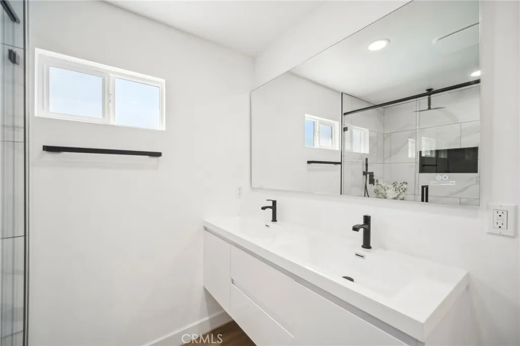 Beautifully remodeled gated home located in a highly desirable Porter Ranch neighborhood. Features include 5 bedrooms and 3.5 updated baths with over 2150 sqft of living space. Walk through the double doors and be amazed what this true beauty has to offer. Large light & bright living room with modern fireplace opens to the dining area, brand new custom kitchen with quartz counters, a pot filler and stainless steel appliances, two large bedrooms and two large bathrooms downstairs, 3 bedrooms and 1.5 baths upstairs, fully finished two car attached garage with direct access, private back yard with pool and so much more. Additional features include new dual pane windows, laminate flooring and recessed lighting throughout, new paint inside and out, updated central A/C and Heat. This is a must see home in a beautiful neighborhood with great schools and just minutes to the Vineyards in Porter Ranch.