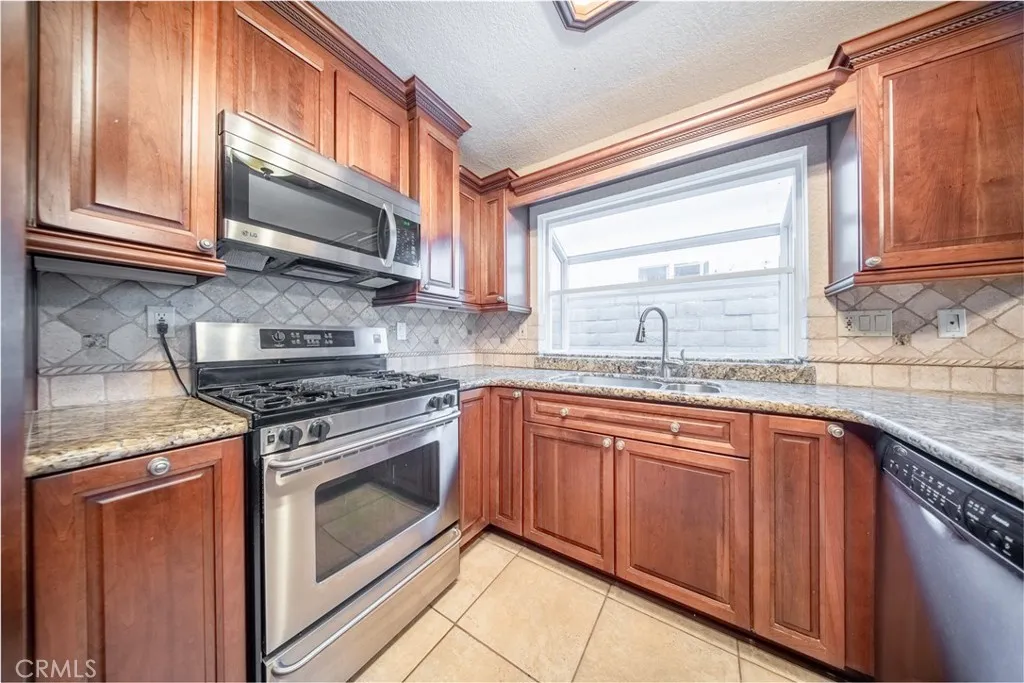 Welcome to this charming single-level 3-bedroom, 2-bath home offering approximately 1,787 square feet of comfortable living space. Thoughtfully maintained and ready for your personal touch, this property is the perfect opportunity to make it truly your own. The spacious kitchen features slab granite countertops, a travertine backsplash, stainless steel range, built-in wine fridge, and a custom red oak entertainment center ideal for both everyday living and entertaining. A decorative arched window adds warmth and character to the dining space. Take a step outside to the stone patio, where you can relax and take in beautiful views from the private backyard. Situated on a single-loaded street, the home offers added privacy and a peaceful atmosphere. Conveniently located near parks, top-rated schools, shopping, and dining, and just minutes from Southern Californias best beaches, this home combines comfort, location, and potential a rare find in todays market.
