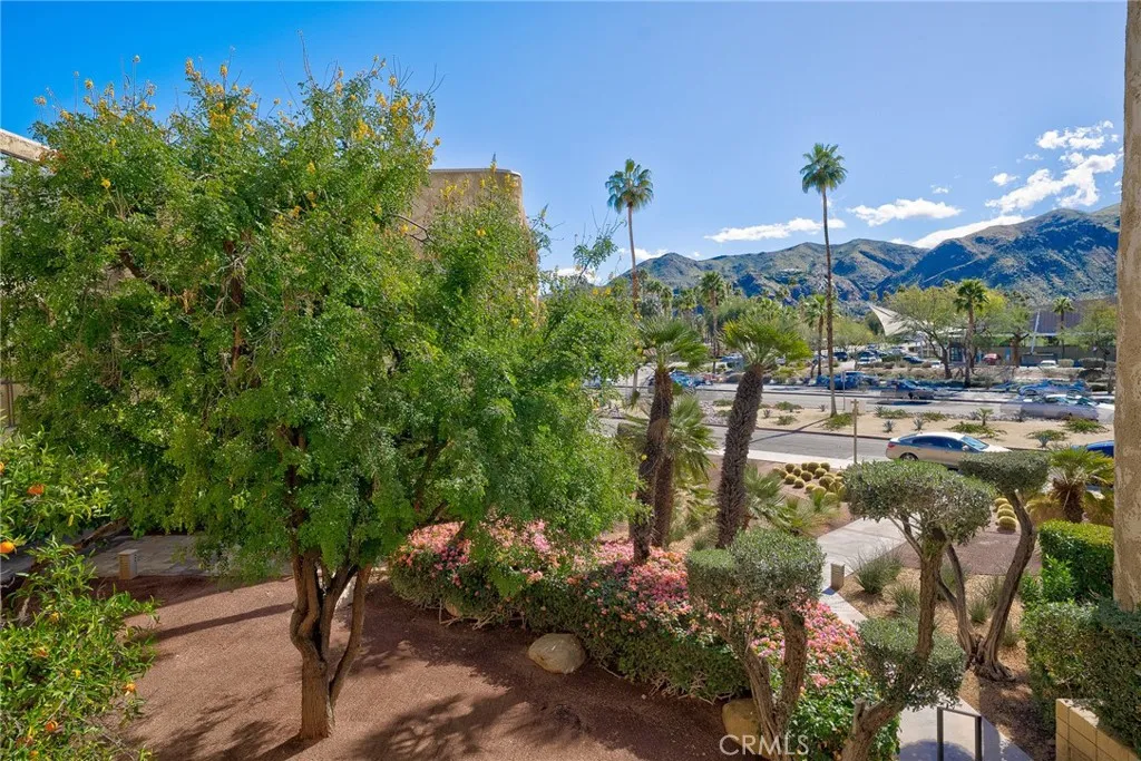 Welcome to The Diplomatan iconic South Palm Springs addresswhere double doors open to a spacious two-bedroom home designed for effortless desert living. Floor-to-ceiling windows showcase incredible mountain and palm views, bathing the space in natural light and creating an inviting indoor-outdoor atmosphere. The extended galley kitchen is functional, featuring dual French-door stainless refrigerators, ample cabinetry, and a built-in office nook ideal for remote work or everyday planning. A mirrored wet bar connects seamlessly to the open living and dining area, where upgraded lighting sets the perfect mood for relaxing evenings or entertaining guests. The primary suite is a true retreat with double sinks, a walk-in closet plus an additional slider closet, and peaceful views. A well-positioned guest bedroom and nearby three-quarter bath add flexibility for visitors, hobbies, or a home office. Enjoy the ease of secure underground parking with elevator access, just steps from your front door. Developed by renowned builder Robert Grundt, The Diplomat is admired for its striking sculptural architecture, lush landscaped open space, and resort-style amenities, including a sparkling pool and spa. The HOA includes Spectrum TV with premium channels, Wi-Fi internet, water, and trash, making ownership refreshingly low-maintenance. Just across the street from Smoke Tree Village, youll have markets, boutique shops, a pharmacy, and local restaurants right at your fingertips.