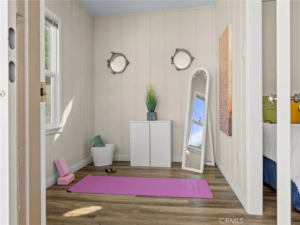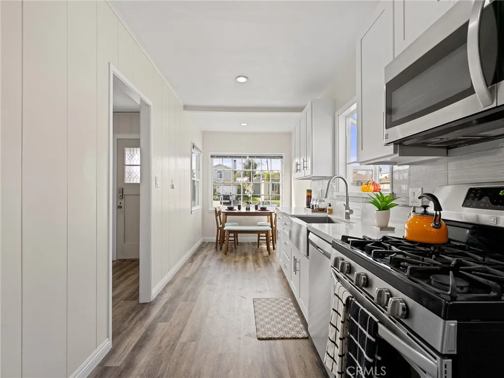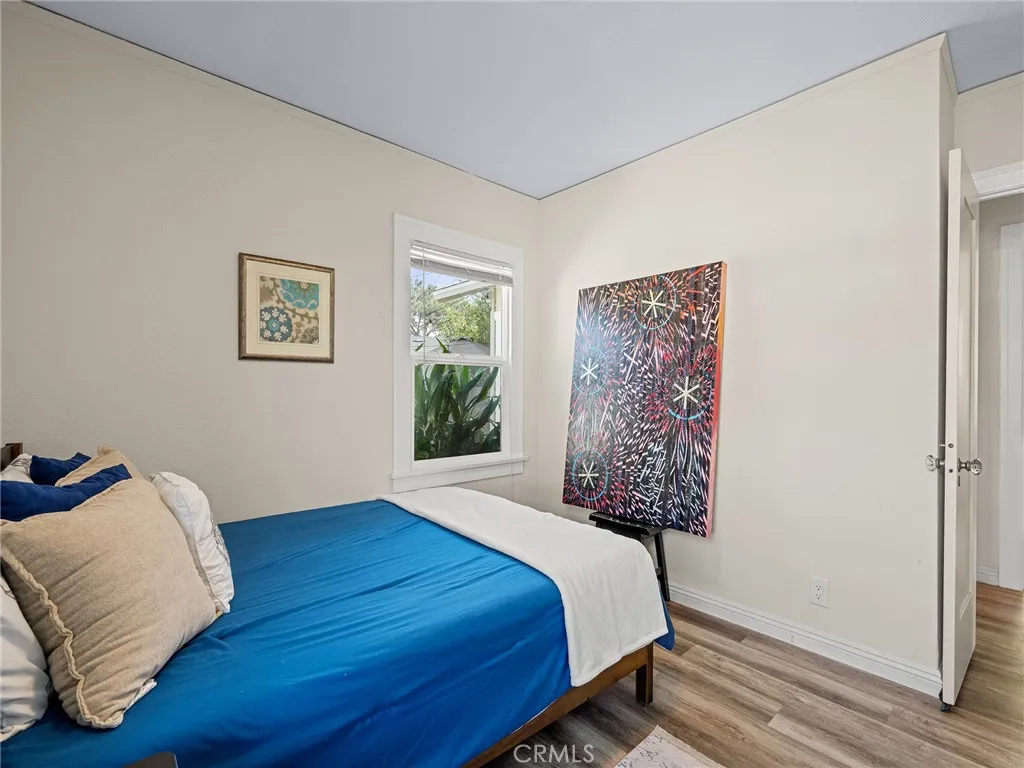 Tucked away on a quiet cul-de-sac in historic Old Torrance, this remodeled home blends charm, comfort, and modern style. Elevated from the street, it enjoys greenbelt views and refreshing coastal breezes, just blocks from strollable downtown shops and cafes. The bright living room features a picture window framing a blooming plumeria tree and a cozy electric fireplace. Enjoy dining in the sunny nook overlooking the greenbelt through its own picture window. The sizeable kitchen was thoughtfully remodeled with quartz countertops, a farmhouse sink, garden window, 5-burner stove, and stainless-steel appliances. . Both bedrooms are generously sized and light-filled with one featuring a walk-in closet and an attached bonus room ideal for a home office, 3rd bedroom, or yoga space. The full bath has been updated with ample towel and supply storage, combining practicality with style. Updates include luxury wide-plank flooring, recessed lighting, and dual-pane windows. A converted oversized garage with vinyl flooring and a new bath offers a great flex space for a gym, playroom, music studio, or hanging out. The large backyard patio is perfect for outdoor entertaining or relaxing. Experience the best of Downtown Old Torrance just steps away from this special neighborhood.